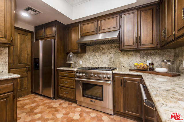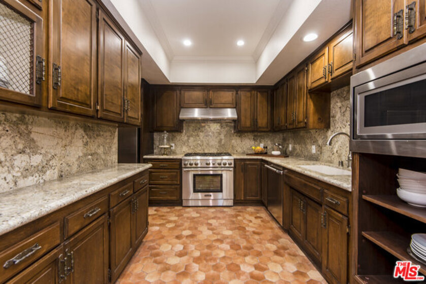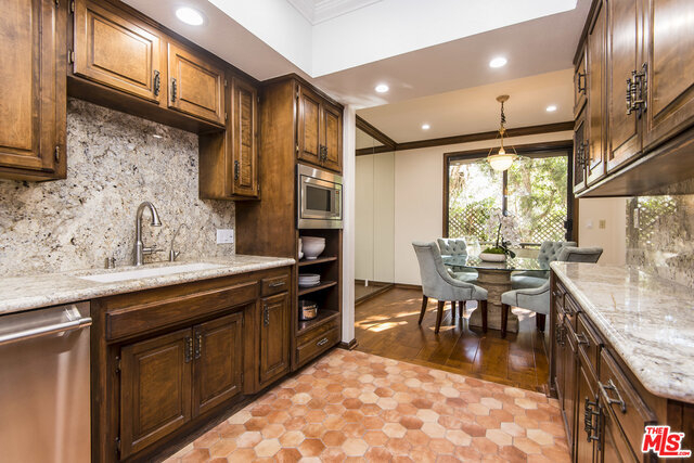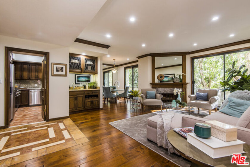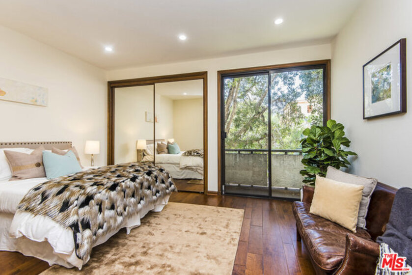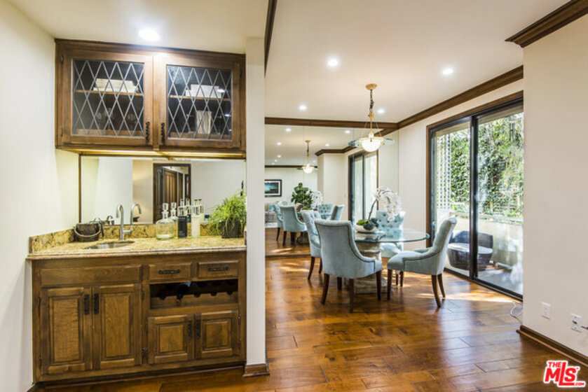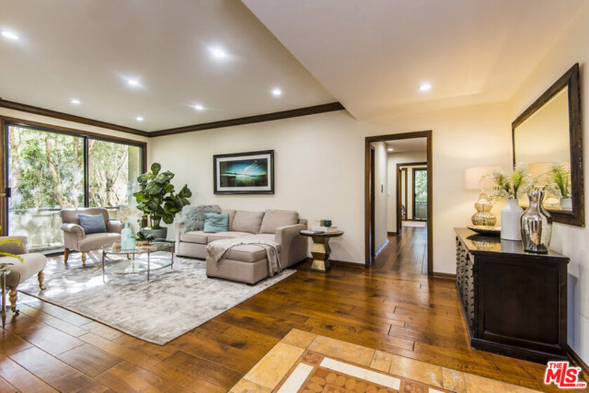 Prime Westwood location! Updated & spacious 2 bedroom, 2.5 bathroom corner unit condo. Enter through the large double doors into the ample living room with wet bar, fireplace and balcony access. Adjacent dining area opening to stainless steel kitchen with 6 burner stove & farm sink. Hardwood floors, & recessed light throughout. Huge master suite with large walk-in closet, grand master bath with dual sinks & separate shower & bathtub. 2nd ensuite bedroom with 2 closets. Very serene & private, tree views from almost every window. Lots of storage, close to restaurants, shopping & more.