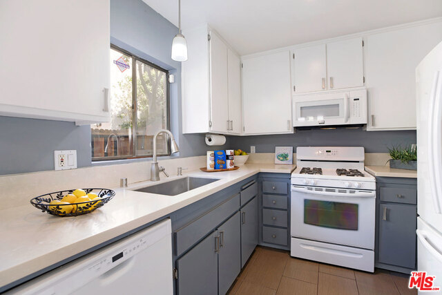 Fall in love with this 2 bed / 2.5 bath townhouse located in sought after Westwood. The personal entry leads to a living room with a fireplace and opens onto a charming front patio. The formal step up dining area looks out onto the living room and opens onto the kitchen, making it a great flow for entertaining. A cheerful eat-in kitchen opens out onto a second private patio space that is perfect for dining al fresco. There are wood floors in both the living and dining spaces. Master suite has a walk-in closet, vaulted ceilings and ample room for an at-Home workspace. Each of the two bedrooms is en-suite and there is a formal powder room on the main level. Tandem parking spots are conveniently located right next to direct access into the unit. Additionally, there is an ample sized laundry room with storage. This townhouse truly feels like a home.