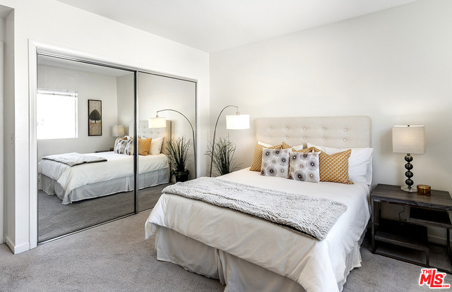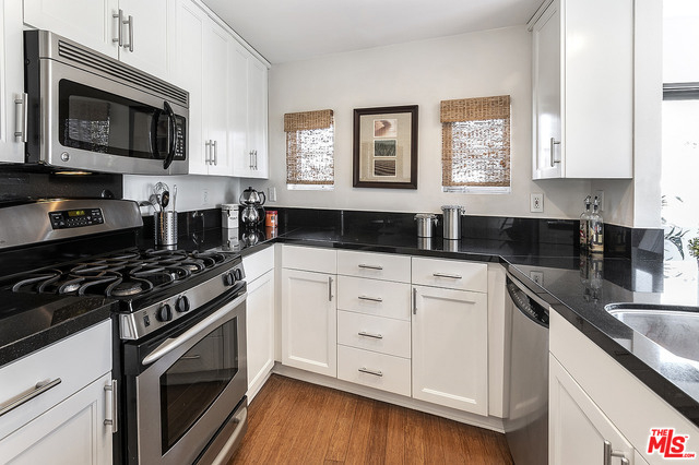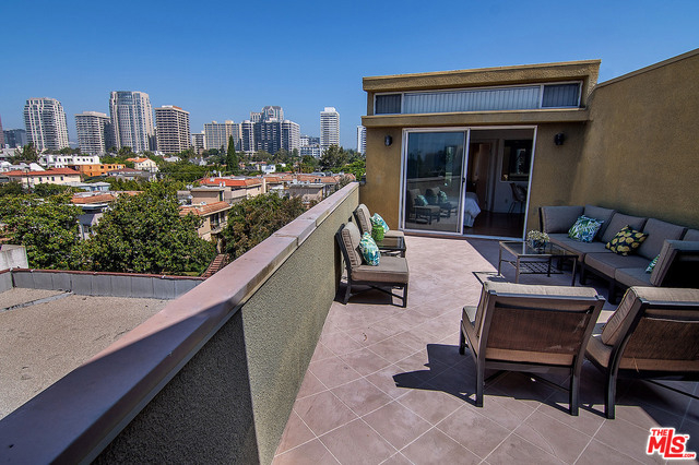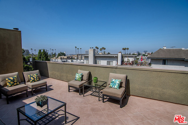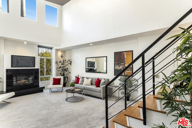 2-bed 2-bath corner unit penthouse in a well maintained 7-unit building in Westwood! Upon entering, you are greeted by soaring ceilings, expansive & bright floor-to-ceiling windows, covered balcony & wood burning fireplace. This 2-story condo has a floor plan that functions brilliantly. The open living & dining area flow seamlessly to the kitchen, complete w/ bamboo floors, newly painted cabinets, granite counters & plenty of cabinets. Upstairs, the incredibly private master retreat offers bamboo floors, an en-suite full bath w/ marble counters & direct access to the home's private rooftop terrace, an ideal space to do yoga in the morning! The 2nd bedroom, located on the main level, is well sized & offers a wall of closets. A spa-like full bath w/ dual vanity, marble counters, tub & freshly painted cabinets is also located on the main floor. Addt'l features: central ac/heat, in-unit laundry, 2 parking spaces; extra storage. HOA dues include EQ, water, trash, building maint. No FHA