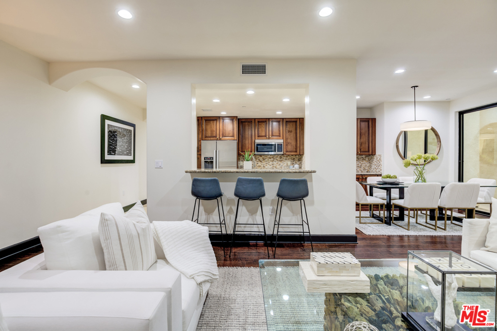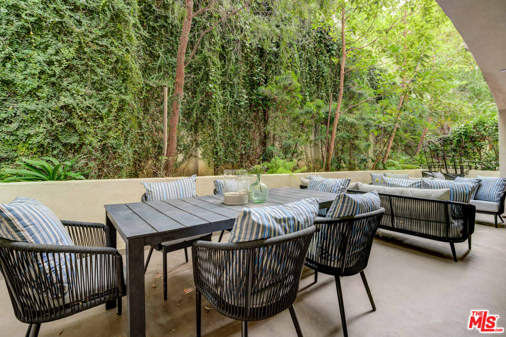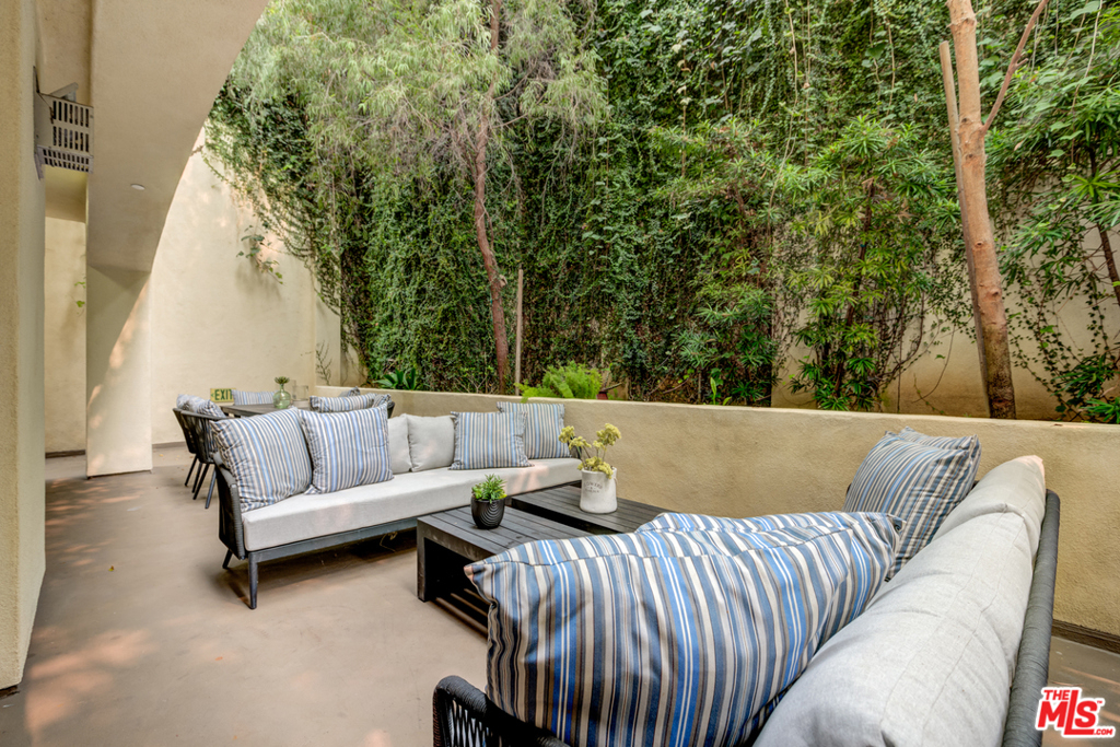 Luxury corner situated condo in sought-after newer construction building. Let the amazing and expansive wrap-around patio with lush garden be your private oasis in the City! Foyer opening to beautiful travertine flooring & wide halls w/ Master retreat to one side & second bedroom to the other, each w/ full en-suite bathrms. Kitchen w/ breakfast bar overlooking living rm w/ gas fireplace & dining rm, perfect for entertaining. High-end finishings include imported Italian walnut cabinetry, plenty of storage, Stainless BOSCH appliances, new LED recessed lighting, Nest thermostat, freshly painted throughout with new berber carpeting in bedrooms. Top notch location in Westwood close to world-class shopping, dining, Century City Mall, Wilshire Corridor, Beverly Hills and more. Broker and broker's agents do not represent or guarantee accuracy of the square footage or any other information concerning the conditions or features of the property. Buyer is advised to independently verify.