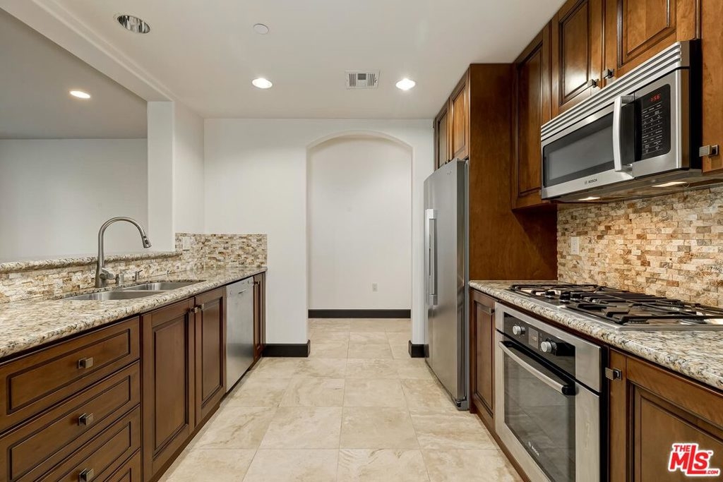 Efficient yet stylish and exuding a smart use of space, this 2 bedroom/2.5 bath 1,446 sq ft condominium situated in a luxury building on the Westside is an ideal living solution. Only 16 units in a building built in 2011, this unit offers high end finishes and flooring, stone fireplace in the formal living room, sun-dappled treetop views, a Master Bedroom with large walk-in closet and attached bath with two sinks in the vanity. The welcoming kitchen has a pass through opening to the living room, ideal for entertaining. It also offers granite countertops, stone backsplash, state-of-the-art stainless steel appliances including a Bosch dishwasher, oven & microwave and brand new Whirlpool refrigerator. With balconies, washer/dryer, ample closet and storage spaces, 2-car tandem parking with EV charger in secure garage and a stones throw from the shops and restaurants of Westwood, Beverly Hills and Century City, this sophisticated condominium is a sight to behold! Open Sunday 2-5pm.