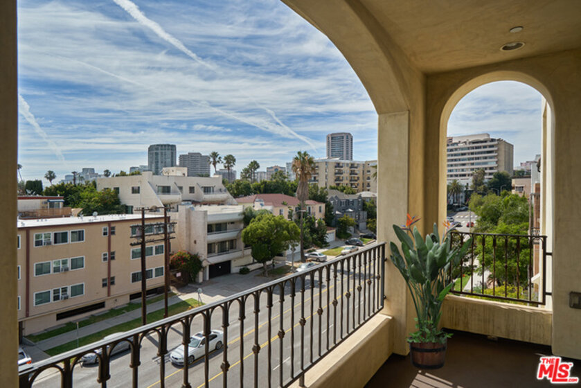 Stunning 2 BD + 2.5 BA front facing SW corner penthouse with expansive views! Hands down the best unit in the building! Top quality finishes and high attention to detail define this luxurious newer construction 16-unit complex. Floorplan includes a formal entry way, open living & dining areas, designer kitchen w/Bosch SS appliances, large en-suite bedrooms, 3 generous-sized balconies, powder and separate laundry. Huge master suite with large walk-in closet and sumptuous master bath complete with dual sinks, shower and separate soaking tub. Other features include high ceilings, recessed lighting, gorgeous wood floors, elegant French doors, imported Italian walnut cabinetry, fireplace and custom-built entertainment center w/surround sound. Additional amenities include gated access, side-by-side parking, extra storage, low HOA dues and EQ insurance. Incredible location within walking distance to restaurants, shopping and the new Century City mall. A unique and very special offering!