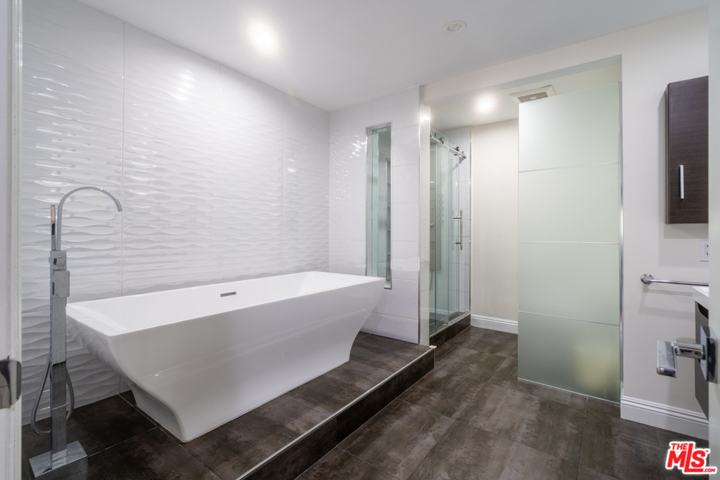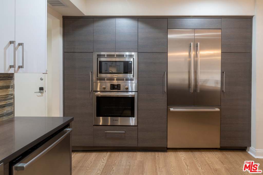 Elegant, renovated three bed, three bath condo with two patios, huge living room, wet bar, two fireplaces, an abundance of windows and seamless floor plan that makes this condo feel like a home. The chic gourmet kitchen features quartz countertops, custom cabinets, glass backsplash and Bosch appliances. The primary bedroom features large private patio, walk-in closets and spa bathroom with free standing tub and separate stand-up shower with jets. This home has ample closet space, A/C with Carrier Air Filtration, washing machine and dryer in unit and great flow. The HOA amenities include newly built gym, pool, spa and sauna. Located in prime Westwood next to Beverly Hills, Century City, Westwood Village and numerous Shops and Restaurants.