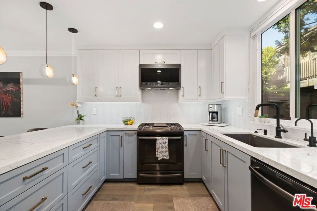Last Showings Saturday 11/13 from 1:30-4pm. Move right in to this beautifully remodeled bright 3 bed, 2.5 bath front facing townhome with a private entrance in the heart of West Los Angeles. Open flowing floor plan with downstairs living area, dining area, breakfast bar, kitchen, balcony & back patio makes this feel like a private single family home. The upstairs boasts three bedrooms, two bathrooms, laundry, another balcony, a sky-light & a den perfect for a home office. Every wall, surface, light, window, door & piece of hardware was impeccably remodeled with great thought, detail & workmanship. Stunning hardwood flooring, quartz countertops, shaker doors, high ceilings & custom cabinets highlight every room. Brand new AC, electrical, plumbing & GE profile appliances. Primary bedroom includes additional soundproofing, triple-paned windows, carpet with memory foam pads, ceiling fan & an en-suite bath with a walk in shower and dual sink vanity. HOA includes water, trash, sewer & EQ insurance! Heated community pool, tandem parking & extra storage. Don't miss your chance at this stunning townhome in a quiet small complex on one of the best tree lined streets close to Westwood, Santa Monica & everything West LA has to offer.