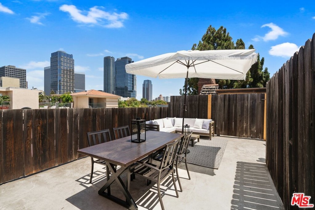 Top Floor Penthouse Unit located just 1 blocks from Century City Mall in single family neighborhood on tree-lined street! Two bedrooms + 2 baths on the main level, 3rd bedroom/Office option in loft area with sitting area and three-quarter bath upstairs adjacent to rooftop patio. Living room with vaulted ceilings, walls of glass, fireplace, and direct access to private patio with city views. Open kitchen with stainless steel counter/appliances and dining area with excellent built-ins and breakfast bar. Guest suite with recently updated bathroom with Carrera marble. Gracious primary bedroom with walk-in closet, double sinks and separate tub and shower set up. Additional Features included: Central Heat/Air, Side by Side laundry inside unit, two Secured/Gated parking spots (side by side). Small intimate building in prime location to access nearby shopping, theater, Equinox Gym Facility and Fine Dining with opportunities from Happy Hour to rooftop dining at Eataly. Amazing opportunity, show and sell!