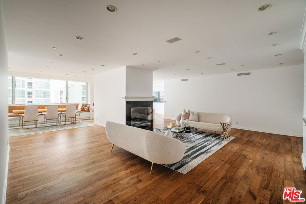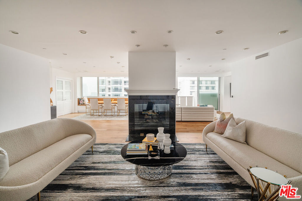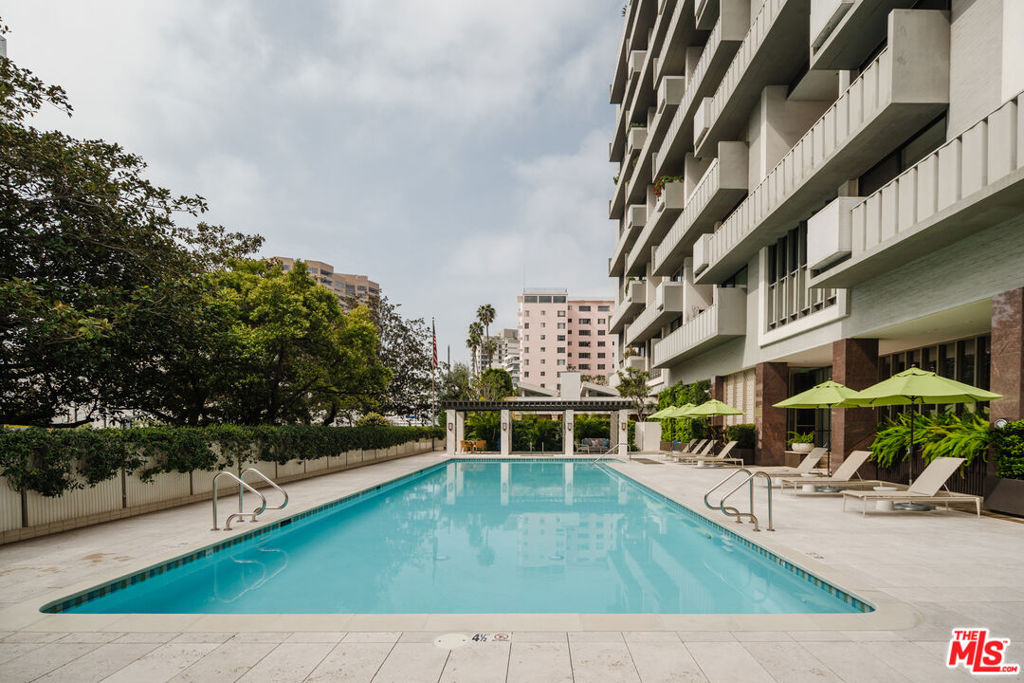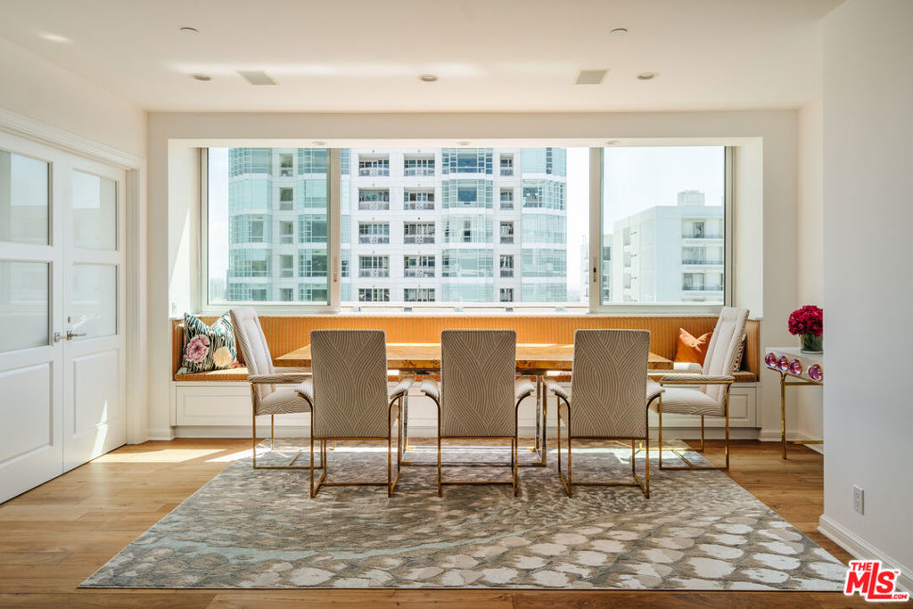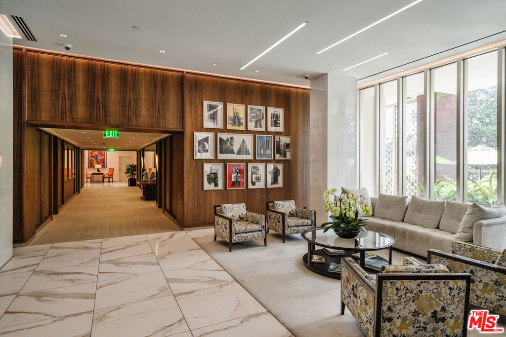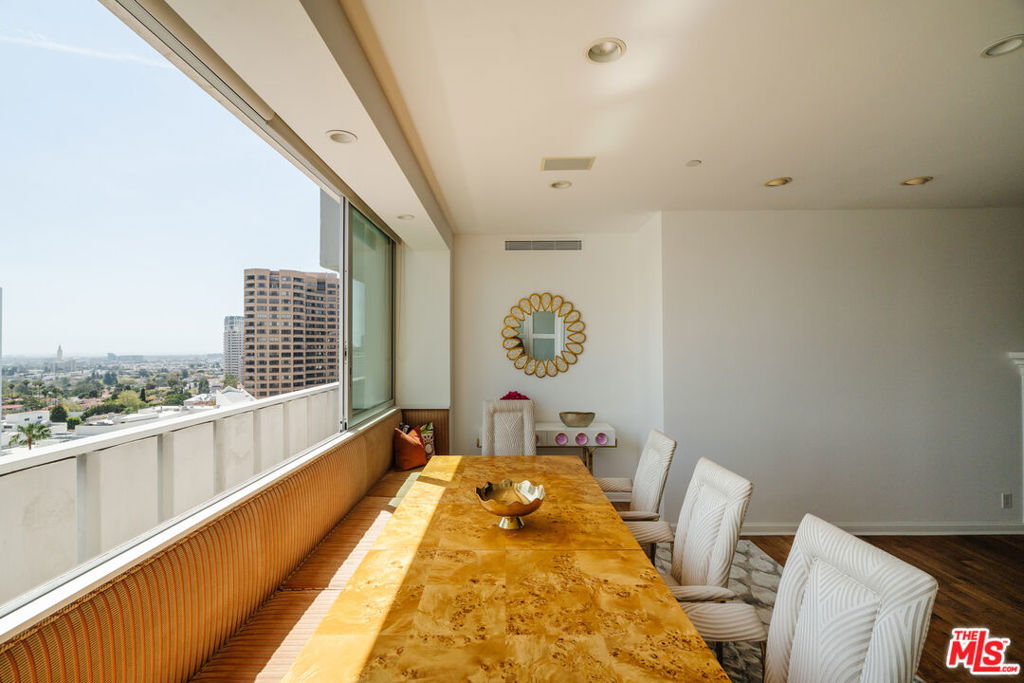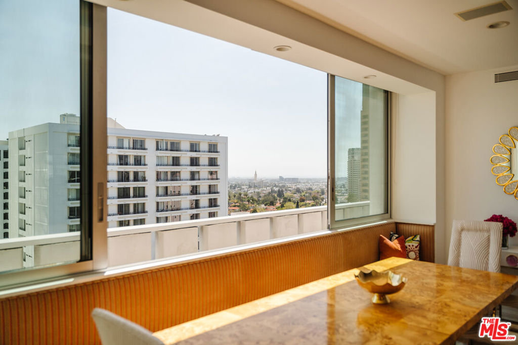 Introducing the finest residence set within the prestigious Wilshire Terrace enclave. Experience opulent high-rise living within all 2,100+ SqFt of this designer-done home showcasing unparalleled panoramic views from the mountains and golf course to the ocean and city skyline. Guests are welcomed into this crown jewel unit by an abundance of natural light, courtesy of the two expansive terraces, and pristine hardwood floors carried throughout the thoughtfully curated floor plan. Meticulously crafted built-ins line the walls of the paneled library accompanied by a cozy fireplace with sight lines to the dining room and den, ideal for entertaining. Exuding an ambiance of refined sophistication, the formal dining room expertly captures breathtaking jetliner views. The chef's kitchen boasts gourmet appliances, stainless steel countertops and a considerable island in addition to the breakfast nook. The palatial primary suite offers lavish walk-in closets and a luxurious ensuite. The Wilshire Terrace spoils its residents with renowned amenities including valet services, a large pool and spa, well-equipped gym, hair salon, dedicated on-site manager, and a dog park in one of the most highly coveted locations.