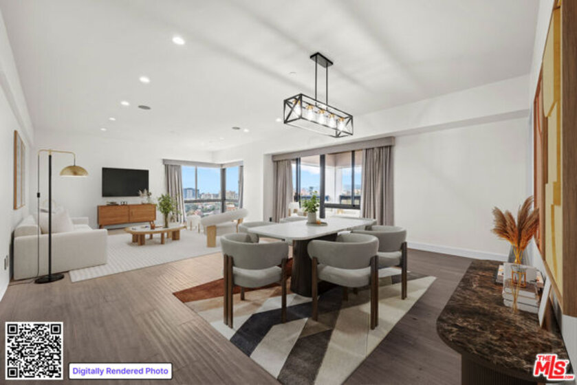 Pleased to present our newest listing at The Grand, a prestigious full-service building offering valet service, a pool, gym, and a recreation room with kitchen. This generous rear-facing unit features two bedrooms and two bathrooms, tastefully redesigned with wood floors and stunning views throughout. The bright, all-white kitchen is outfitted with high-quality appliances and clean, timeless finishes. The spacious primary suite boasts gorgeous views, a beautifully remodeled bath with dual sinks and a double rain shower. The secondary bathroom features a raised soaking tub. The second bedroom opens to a large private balcony, perfect for relaxing or entertaining. Additional highlights include side-by-side parking. This is a rarely available, ideally positioned unit in one of the most sought-after buildings along the prestigious Wilshire Corridor. Don't miss this exceptional opportunity.