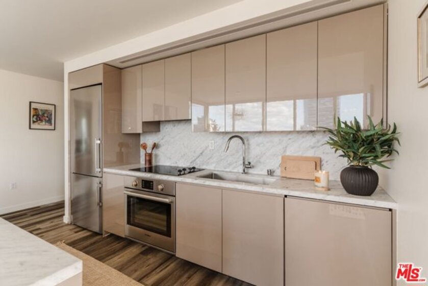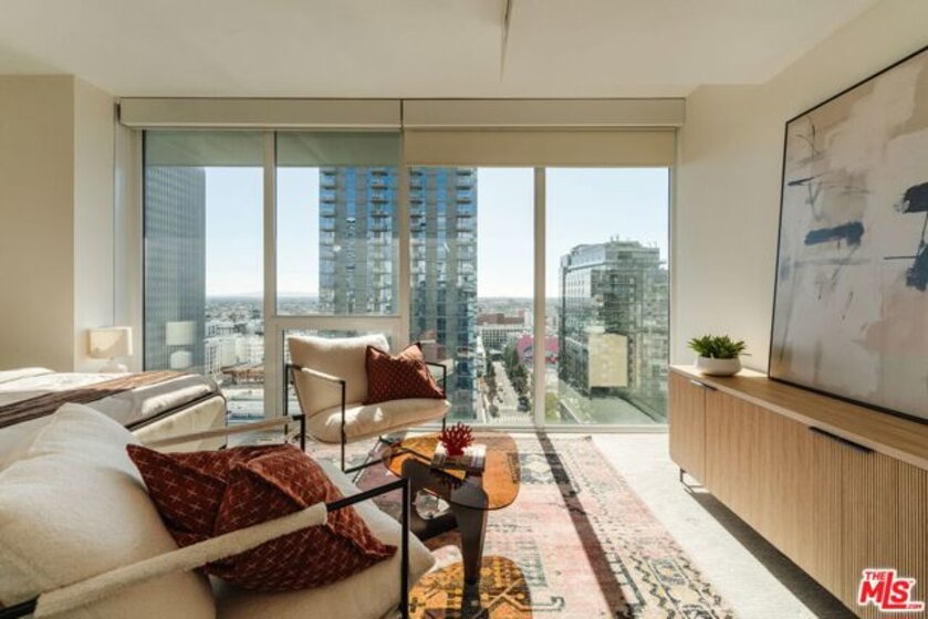 Positioned on the coveted southwest corner of TEN50LA, Residence 1901 sits within the building's most sought-after corner stack, offering sweeping, unobstructed views of the Downtown skyline, the Hollywood Hills, and even the iconic Hollywood Sign. Floor-to-ceiling glass walls place the skyline front and center, filling the home with natural light from morning to sunset. The open-concept layout is designed for both everyday living and easy entertaining, with generous living and dining areas centered around a chef's kitchen featuring Domus & Domus Italian cabinetry, a Bertazzoni cooktop, Liebherr refrigerator, Bosch panelized dishwasher, stainless-steel oven, and a Carrara marble waterfall island. Both the primary and guest bedrooms enjoy impressive city views, enhancing the sense of openness and light throughout the home. The primary suite offers a calm retreat with automated blackout shades, a spacious walk-in closet, and a spa-inspired bath with dual vanities and refined finishes. Privately positioned on the opposite side of the residence, the secondary bedroom provides excellent separation and includes its own full bathroom, making it ideal for guests or a home office. TEN50LA residents enjoy a full range of amenities including 24-hour concierge and security, a resort-style pool and spa, fitness center with Peloton bikes, private theater, business lounge, and resident entertaining spaces. Two dedicated parking spaces complete the offering. Located in the heart of South Park, just moments from LA Live, Crypto.com Arena, and some of Downtown's best dining and entertainment, this residence offers elevated city living in one of DTLA's premier full-service buildings.