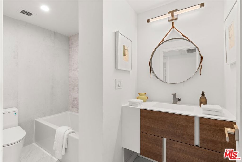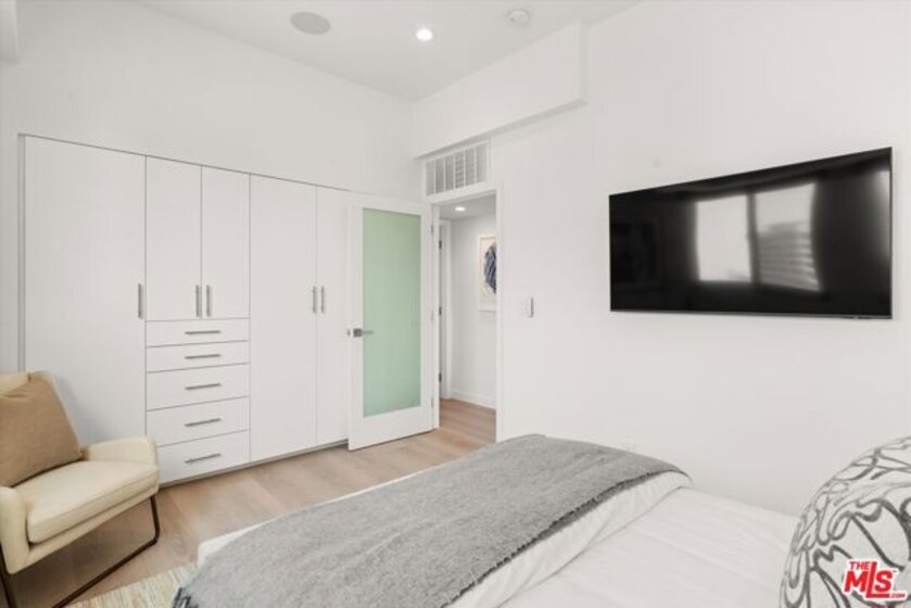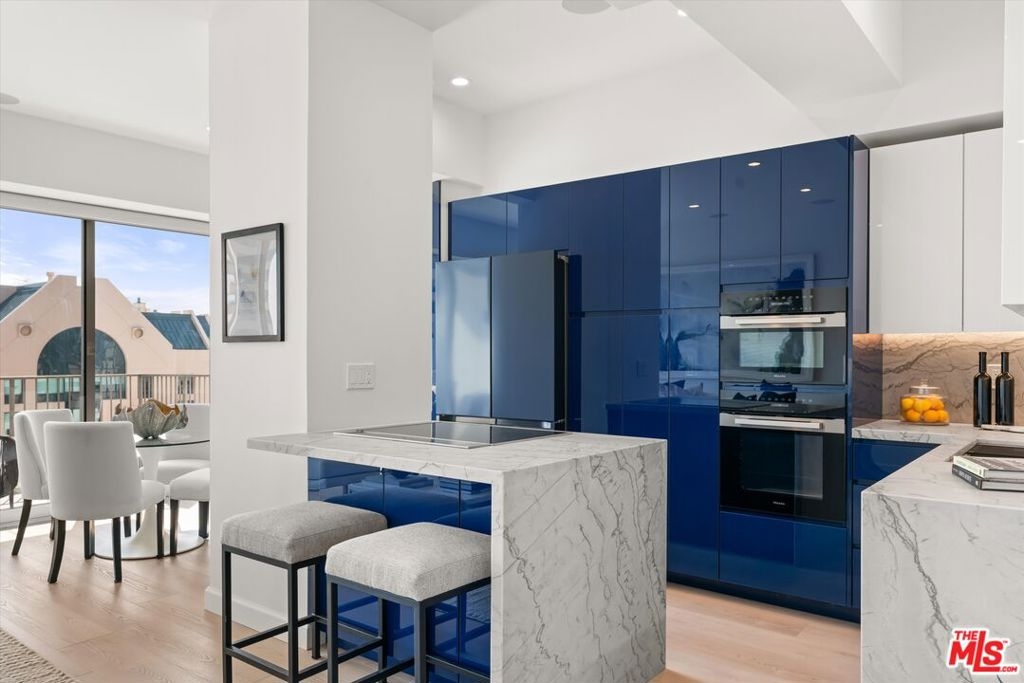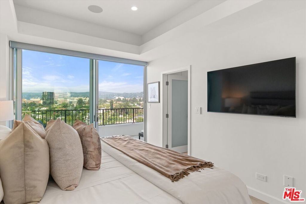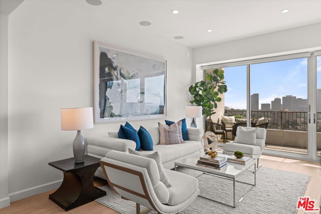 Totally remodeled 2BD/2BA corner unit with south-facing Century City views from the living room and northern Holmby Hills views from the primary bedroom. Newly installed double-paned windows. Balconies off living room and bedroom provide approx. 275 sq ft of additional usable space per CC&Rs. High-end upgrades include Miele appliances, Bespoke refrigerator, Sub-Zero wine fridge, custom cabinetry, water filtration system, and smart touch faucet. Hidden closet with Sonos sound, Wi-Fi hub, and Lutron lighting throughout; TV ready for up to 65", all controlled by mounted iPad. Approx. 10-ft ceilings with recessed lighting and automatic shades. Custom stone baths; primary suite with custom closets and dual sinks. Full-service, non-smoking building with 24-hr concierge, valet parking, pool, fitness center, banquet and conference rooms, on-site management,, move-in/move out fee, guest rooms. Condo is now completely unfurnished. No smoking building - UTILITIES INCLUDED in HOA dues.