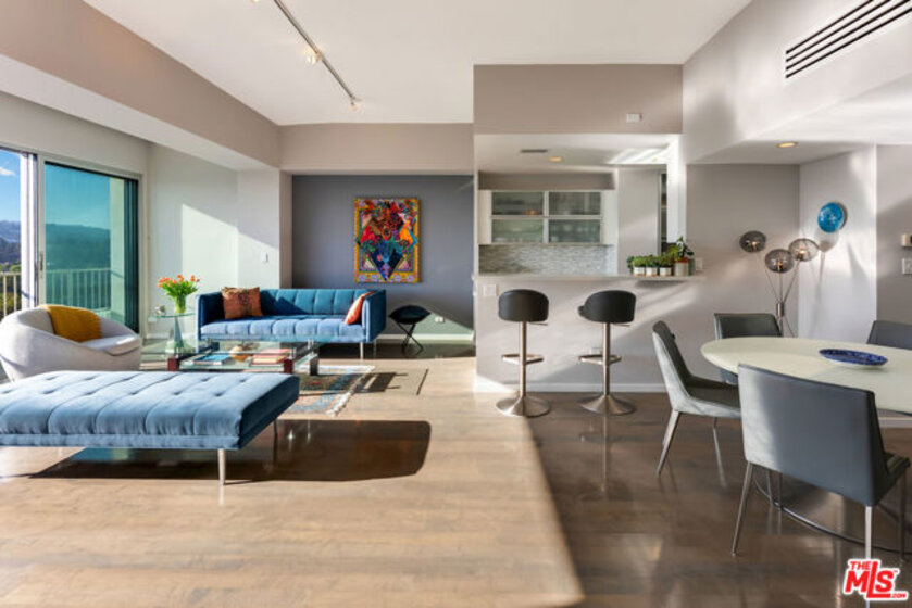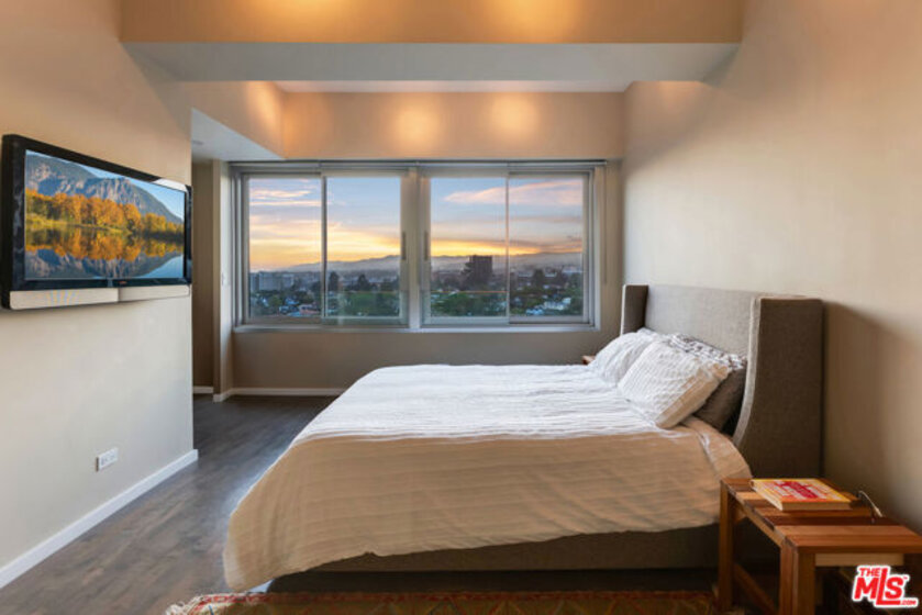 Perched high above the city in the prestigious Wilshire Regent, this exquisitely reimagined two-bedroom, two-bath residence offers sweeping northern vistas of Little Holmby and Bel Air from every room. Soaring ceilings elevate the sense of space, while the open-concept kitchen stuns with custom cabinetry, and Bosch appliances. The living room features new floor to ceiling sliding glass doors opening to a balcony with majestic views. Perfect for entertaining, the living space includes a bar and wine refrigerator. The primary suite boasts dual walk-in closets, providing ample storage, and a beautiful primary bath. The well appointed secondary bedroom contains built-in storage, a large closet, and a dedicated bath. Residents enjoy access to an impressive suite of amenities including 24/7 concierge, valet parking, pool, sun deck, state-of-the-art fitness center, banquet and conference rooms, and more. ALL UTILITIES ARE INCLUDED IN THE HOA (Electric, Water, Trash, Cable, Wi-fi).