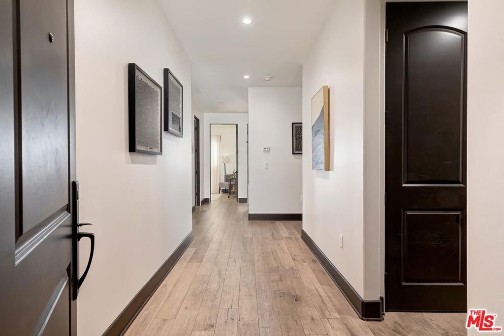 In a sought-after Westwood location, just moments from everything, this three-bedroom single-level residence offers comfort, scale, and privacy rarely found in condominium living. A gracious foyer opens to light-filled interiors, where high ceilings, luxurious wood flooring and a generous layout create a wonderful sense of volume and style. With no common walls and in a corner location, the home offers a rare feeling of privacy and ease. The modern open floor plan features a great room anchored by an inviting formal living room with stately fireplace flowing seamlessly into a spacious formal dining area perfectly designed for both daily living and entertaining. The dining room connects to the kitchen by way of a breakfast bar, creating a layout that feels both open and distinct. The gourmet kitchen is a chef's delight appointed with high-end stainless-steel appliances, Italian-style cabinetry, stone countertops and tasteful tile backsplash ready for any level of expertise. An extended patio runs alongside the dining room and living room, adding an easy connection, through several large French doors, to the outdoors. In addition, a discrete powder room allows for easy large scale entertaining or convenient family gatherings. All three bedrooms are positioned privately along the west-facing side of the home, including a well-appointed primary suite with a spacious closet and a sumptuous bath with a separate shower and soaking tub. Two additional bedrooms share a full bath, thoughtfully located just outside the bedroom wing. The extra bedrooms add flexibility for a large family, multiple guests or the perfect home office. This newer building offers a carefree opportunity to enjoy the space and livability of a true home in one of Westwood's most desirable neighborhoods mere moments from eclectic Westwood Village, world renown UCLA, Century City business hub, tony Westfield mall, word class Beverly Hills shops and restaurants and is located in the highly desirable Fairburn Elementary School district.