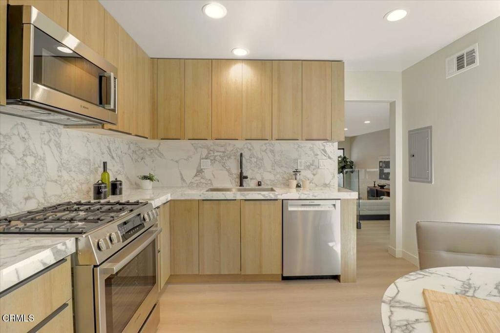 Welcome to 10720 Ohio Ave #5 -- a beautifully renovated 3-bedroom, 2.5-bathroom townhome nestled in the heart of prime Westwood, offering an ideal combination of comfort, style, and convenience.This spacious, light-filled home features a newly updated interior with designer finishes throughout, including new flooring, a chef-inspired kitchen with custom cabinetry and premium appliances, and a stylish powder room. The open-concept living area flows seamlessly into a private atrium and wide-open patio, creating a perfect indoor-outdoor living experience. The dining room and kitchen wrap around the atrium, offering a serene and functional layout for both relaxing and entertaining.Upstairs, the luxurious primary suite boasts dramatic vaulted ceilings, a walk-in closet, and a spa-quality en suite wet room with double sinks. Two additional bedrooms offer flexibility for family, guests, or a home office. Additional amenities include in-unit laundry and direct access to the parking garage for ultimate convenience. Very well managed building complex and efficient HOA with only $630/month and includes: pool, unit water, trash and insurance with common areas' landscape gardening and cleaning. Located minutes from UCLA, the Hammer Museum, and Century City Shopping Mall, this home is also within walking distance to Blue Ribbon Fairburn Elementary School, charming coffee shops, upscale groceries, and a variety of trendy restaurants. With easy access to major freeways and West LA hotspots, this townhome puts you at the center of it all.Don't miss this rare opportunity to own a move-in-ready home in one of Los Angeles' most sought-after neighborhoods.