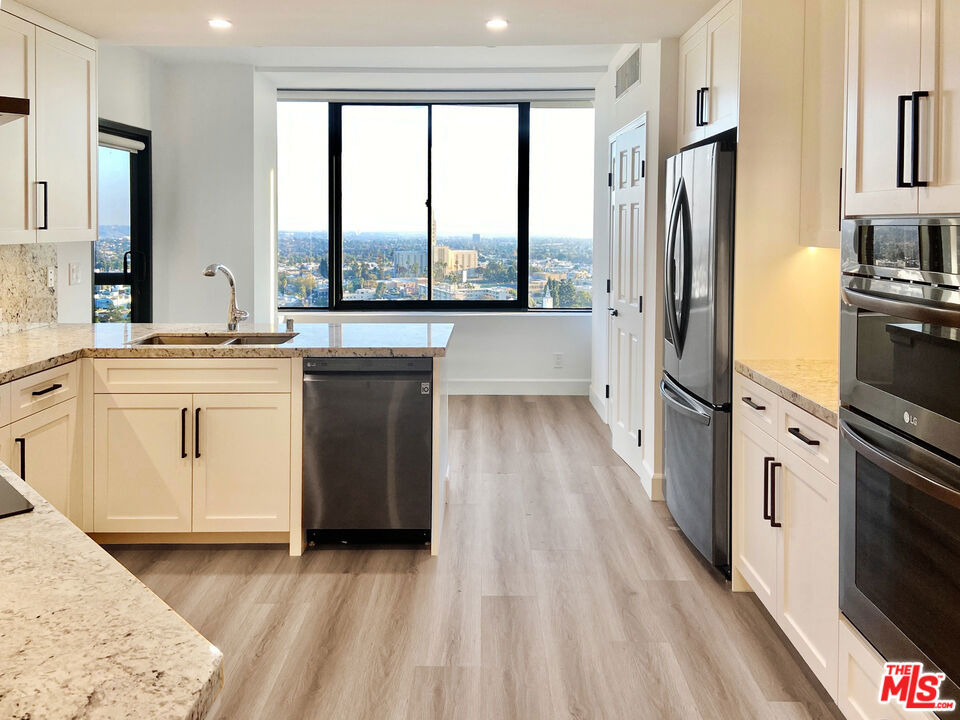 Breathtaking expensive Views, Views, Views, unobstructed city lights from Century City to the ocean. A rare opportunity to own such a remodeled unit on quite side of the Prestigious Park Wishire Corridor with exposure from three directions. A formal luxurious entry leads to a large living room, den area and a balcony. Large dining room. Enjoy the spacious kitchen with Sile stone countertops, pantry. double oven, breakfast area. Master suite has a sitting area and his & her walk-in closets. Master bathroom with separate tub, shower, double sink. The other two more bedroom suites have ocean views. Abundance of windows. Light filled. Custom made automated blackout shades throught-out. Building amenities include 24 hour concierge and valet parking as well as pool, spa, fitness center, banquet room and 3 social rooms. Luxury living at its finest building and more...