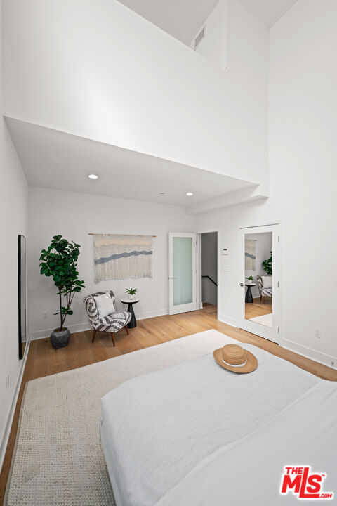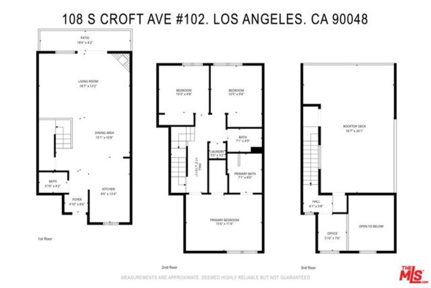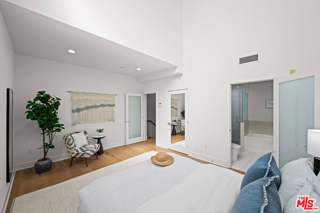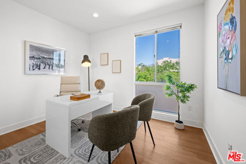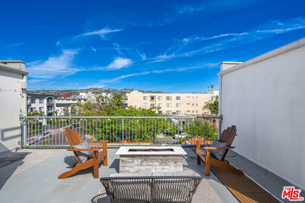 Contemporary townhouse built in 2011, located in an intimate 6-unit building in the heart of Beverly Grove an unbeatable location with a Walk Score of 94. This home is truly a neighborhood gem, offering modern luxury, high-end amenities, and timeless charm. This 3BR + office, 2.5BA residence has it all: a sleek modern kitchen with Viking range and quartz stone counters, an open floor plan with wide-plank white oak floors, and a cozy bar/den area perfect for entertaining. The primary suite features dramatic 20-foot ceilings and an en-suite bathroom with dual sinks, separate soaking tub, and shower. Two additional bedrooms are conveniently located on the same level, along with a second full bath and washer/dryer. Upstairs, a loft/office leads to an expansive 600+ sq ft private rooftop deck equipped with custom lighting, sound system, upgraded flooring, BBQ, fridge, dining area, gas firepit, outdoor movie theater with high-definition projector, plus incredible views of the Hollywood Hills (unlike other units in the building). The home has been recently finely remodeled with new hardwood floors replacing prior carpet and energy-efficient LED lighting throughout. Set in a highly walkable neighborhood, you can enjoy shopping, dining, errands, local parks, and vibrant cafes all just seconds away. Friendly neighbors and a strong community vibe make this home not just beautiful, but truly welcoming. Don't miss this exceptional opportunity to experience modern comfort, style, and convenience in one of LA's most desirable locations.