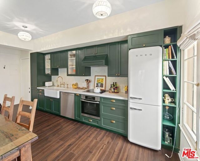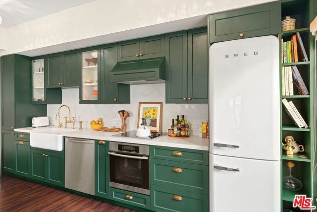 Experience the most sought-after landmark building at the prestigious Warwick on LA's iconic Sycamore Avenue. A jewel box with completely remodeled kitchen including Shaws sink and Perrin & Rowe fixtures. The newly remodeled bathroom with Italian stone and Waterworks fixtures is stunning and glamorous. Classic Hollywood charm meets sleek loft style living including high ceilings, concrete columns, open floor plan, Juliet balconies and French windows surround this beautiful sunny corner condominium. Centrally located and a mere stroll to chic shopping, fabulous restaurants and the studios. A rare find.