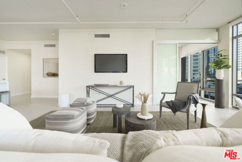 This stunning high-rise condominium, situated in the northwest corner, offers breathtaking north-facing views of the Downtown Los Angeles skyline, including the vibrant LA Live and Crypto.com Arena. LUMA, a LEED Certified GOLD building, features expansive floor-to-ceiling windows that bathe the interior in natural light by day, while the evening skyline presents a captivating display. The thoughtfully designed split-bedroom layout includes en-suite bathrooms for each bedroom, a third guest bath, and a spacious open kitchen equipped with a center island and wine fridge, ideal for entertaining. Recent enhancements such as fresh new paint, water-resistant SPC flooring, an automated blind system, and updated kitchen appliances and cabinets elevate the living experience. A private balcony provides a tranquil space for morning coffee or evening relaxation, complemented by stunning views. Additional conveniences include a utility room for a full-size washer and dryer, two assigned parking spaces with an EV charger, and easy access to the basement garage. Residents can indulge in resort-style amenities, including 24/7 front desk service, a fitness center, and a fourth-floor terrace with BBQs, a fire pit, pool, spa, and lounge areas, perfect for leisure or social gatherings. Embrace the LUMA lifestyle, where you can easily walk to Crypto Arena, concerts, shopping, and dining, as well as enjoy local bars, LA Live, the Farmers Market, or a film at the Alamo Drafthouse Cinema, all just steps from your door. Opportunities like this are truly rare, so come and experience it for yourself.