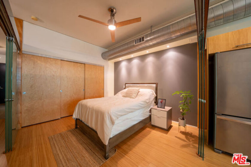 Well below tax assessor's value and previous purchase price. Seize the opportunity before someone else does. Experience urban sophistication in this stunning 1,100 sq ft soft-loft residence at the LEED-Certified "Elleven" Building, one of Downtown LA's most sought-after addresses.This spacious west-facing home showcases over $45,000 in designer upgrades, including beautiful bamboo flooring, custom six-foot smoked-glass sliding panels with a sleek stainless-steel header and solid-wood framingproviding an elegant sense of bedroom privacy while maintaining an open, airy flow.The wall-to-wall windows fill the space with natural light and offer tranquil treetop views accompanied by the soothing sounds of the community's water feature below. The modern kitchen features stainless-steel appliances, granite countertops, and a stainless mosaic backsplash, perfect for both cooking and entertaining.Additional highlights include recessed lighting, a large laundry room with built-in storage, a custom closet organizer, and one assigned parking space conveniently located next to a private storage rooma rare and valuable amenity in DTLA living.Located in the vibrant South Park District, you're just steps away from LA Live, Crypto.com Arena (formerly Staples Center), Microsoft Theater, Ralphs, FIDM, and countless acclaimed restaurants, cafs, and lounges.