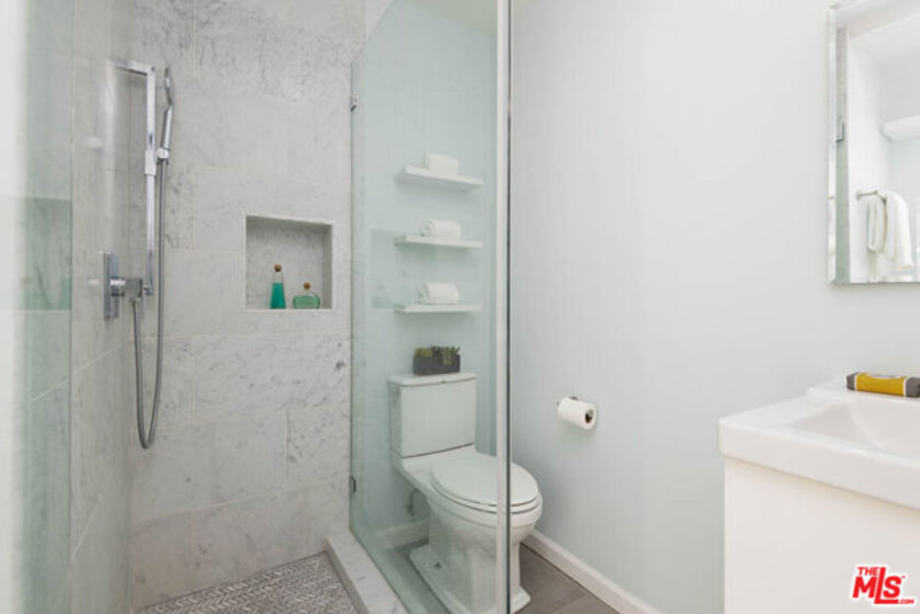 Fantastic Brentwood condo! This top floor 2 bedroom/2 bathroom condo is located in the heart of Brentwood. This unit which is flooded with natural light features a large open concept floor plan with a cook's kitchen, wood cabinetry, stainless steel appliances and gray quartz-like countertops. The unit also features vaulted ceilings, a newly refurbished bathroom, central heat and AC and a private patio. The complex features beautiful landscaping and a secured entry, in addition the HOA allows washer/dryers to be installed in the units. The unit is located close to all the best shops and restaurants that Brentwood has to offer. Live your best Brentwood life in this unit!!