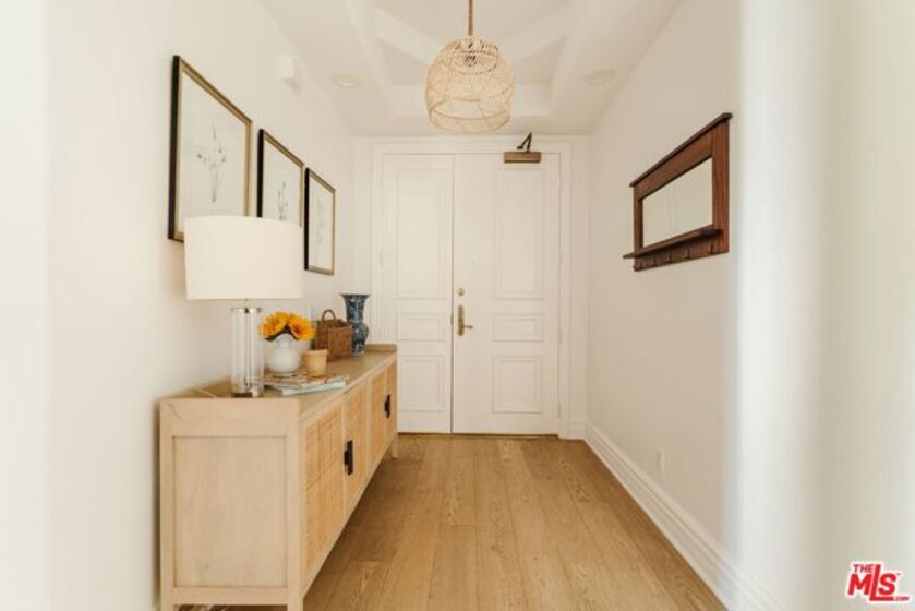 Located on coveted Montana Avenue in Brentwood, this beautifully upgraded residence is set within a well-maintained building that has seen recent improvements over the past three years, including a new roof, refreshed facade, new carpeting throughout common areas, and a soon to be completed gym. Inside, the home stands apart as one of few units in the building without carpet, featuring hardwood floors throughout and high-quality upgrades completed by the current owner. The kitchen has been opened up to enhance flow and natural light, and features a tiled backsplash, fresh paint, updated hardware, additional storage, and a custom bar with wine fridge. Both fireplaces have been upgraded with new stone surrounds, and all bathrooms have been fully enhanced with stone finishes across vanities, updated tile, and modern details. The primary bathroom offers a spa-like retreat with a freestanding tub and a redesigned shower. Custom closets have been installed throughout the unit, maximizing storage and organization. Additional highlights include excellent natural light, dimmer lighting throughout, north facing views, upgraded balcony flooring (including the area above), two tandem parking spaces, guest parking, and additional storage. This is a rare opportunity to own a turnkey condo in a prime Brentwood location, combining extensive unit upgrades with a well-capitalized, proactively maintained building.