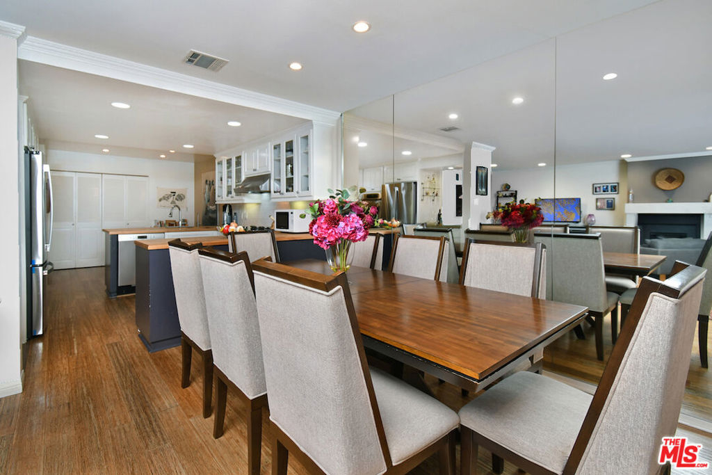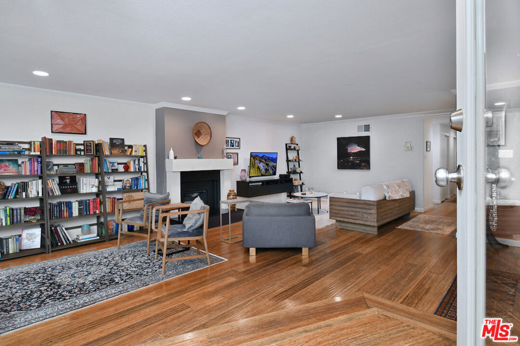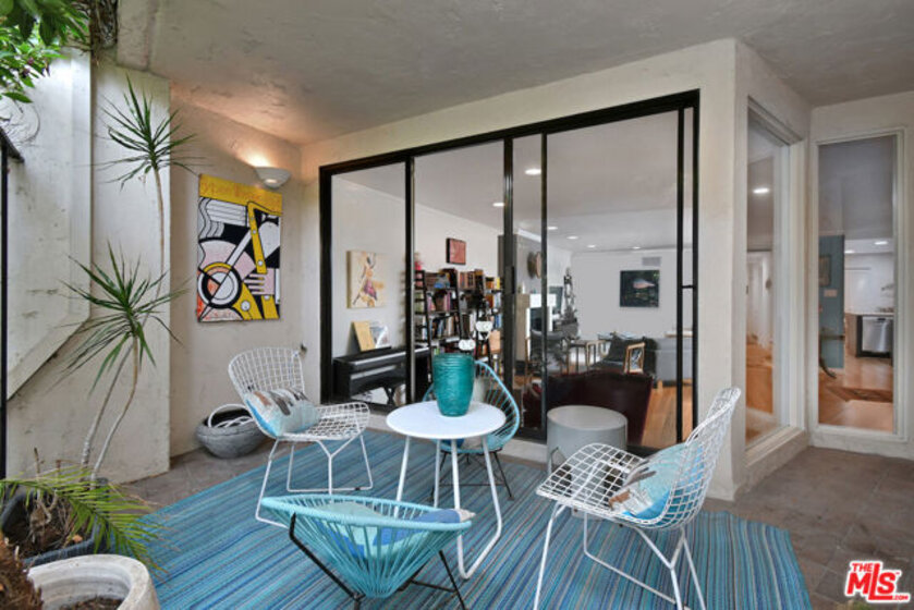 Welcome to Bel Air Courtside Condominiums, an exclusive 16-unit building surrounded by greenery and offering beautifully landscaped grounds, a swimming pool, and a rooftop tennis court. Private patio courtyard entry opens to the front porch and patio. From the courtyard, a glass front door leads into the inviting living space with multiple sitting areas, a mantled fireplace, hardwood floors, wet bar, and sliding glass doors to the front patio. The kitchen includes a breakfast area, glass front cabinets, pantry, and opens to the formal dining room. Thoughtful floor plan to enjoy everyday living or entertaining guests. There are two en-suite bedrooms, including the primary bedroom with a walk-in closet and spacious bathroom featuring double sinks, a large soaking tub, and separate shower. Both bedrooms have glass doors that open to a large backyard patio and garden with a fountain. Additional features include great storage space and extra closets throughout, indoor washer and dryer area, and a guest half bathroom. Elevator or stairs lead to side-by-side parking spots with a personal EV charger. A unique place to call home in a great Bel Air/Brentwood location near the Getty Museum. Easy access to everything!