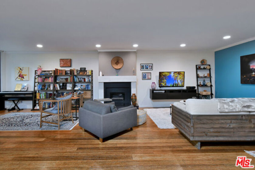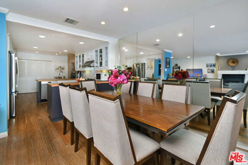 Welcome to Bel Air Courtside Condominiums, an intimate 16 unit building surrounded by greenery and offering beautifully landscaped grounds, a swimming pool, and a rooftop tennis court. Private patio courtyard entry opens to the front porch and patio. From the courtyard, a glass front door leads into the inviting living space with multiple sitting areas, a mantled fireplace, hardwood floors, wet bar, and sliding glass doors to the front patio. The kitchen includes a breakfast area, glass front cabinets, pantry, and opens to the formal dining room. Thoughtful floor plan to enjoy everyday living or entertaining guests. There are two en-suite bedrooms, including the primary bedroom with a walk-in closet and spacious bathroom featuring double sinks, a large soaking tub, and separate shower. Both bedrooms have glass doors that open to a large backyard patio and garden with a fountain. Additional features include great storage space and extra closets throughout, indoor washer and dryer area, and a guest half bathroom. Elevator or stairs lead to side-by-side parking spots with a personal EV charger. A unique place to call home in a great Bel Air/Brentwood location near the Getty Museum. Easy access to everything!