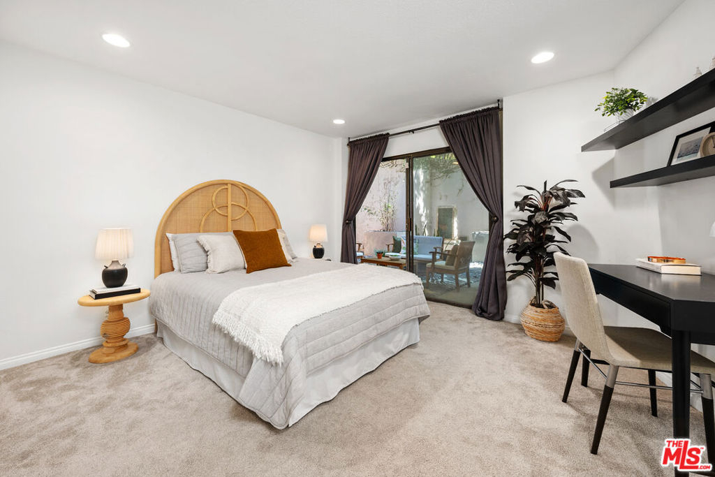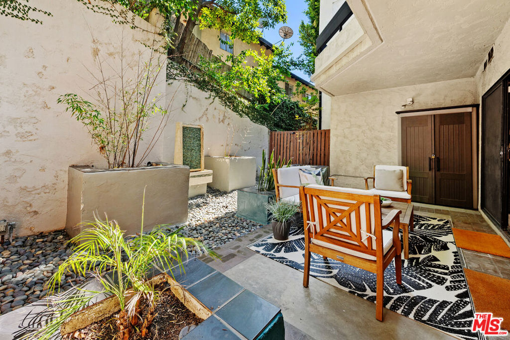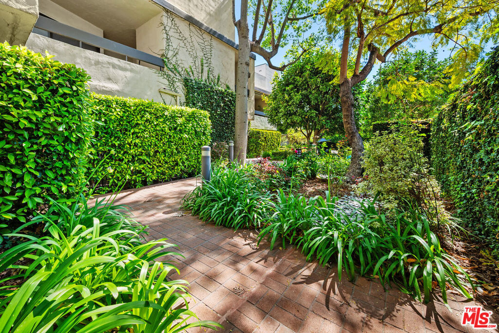 Bel Air Condominium off Moraga & Bellagio!! This unique unit features a front courtyard along with a rear yard totaling +-330 square feet of additional outdoor living space! Step in from your private courtyard to a beautifully redone 1,651 square feet of living space that lives more like a home than a condominium with the Private Front Patio and Rear Yard. The front floor-to-ceiling windows and glass door lead to a beautifully appointed interior with bamboo floors greeting you. Residence highlights include a large living room with fireplace separating two large living spaces, a remodeled open concept kitchen, large dining room, breakfast bar, eat in kitchen, and loads of storage closets, pantry space, in unit washer/dryer, powder room, central heat & air, and two side x side parking spaces with EV 240 Volt charging hookup. The building features a freshly redone rooftop tennis court, heated pool, his and hers saunas, bathrooms, and community room for entertaining, guest parking, and lush mature trees and garden grounds. The redone kitchen features butcher block counter tops, all stainless appliances including double ovens. Walk down the hallway lined with abundant closets and built-in storage to two bedrooms with their own en-suite baths. The primary features a large walk-in closet, double vanities, and a separate spa tub and shower. The second oversized bedroom features its own bath with shower and loads of closet space. This 16 unit building is in the perfect setting and location, close to everything city, yet feels like a world away when inside. Located in the prestigious Roscomare Road school district with Harvard-Westlake and Buckley nearby. A must-see best deal on the westside. Ideally positioned off the 405 frwy close to Brentwood, Beverly Hills, Westwood, UCLA, and Valley Neighborhoods, This residence blends seclusion, livability, and convenience in a highly sought-after Bel Air.