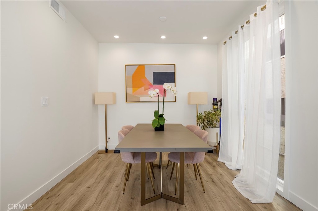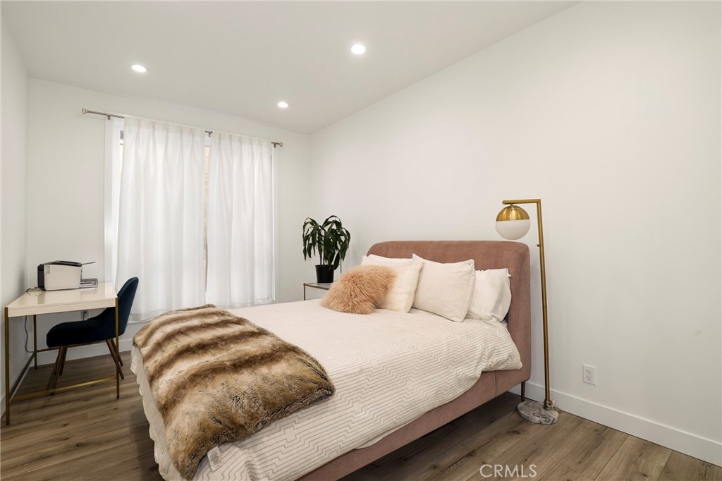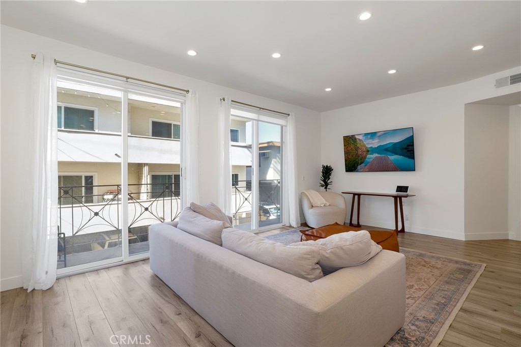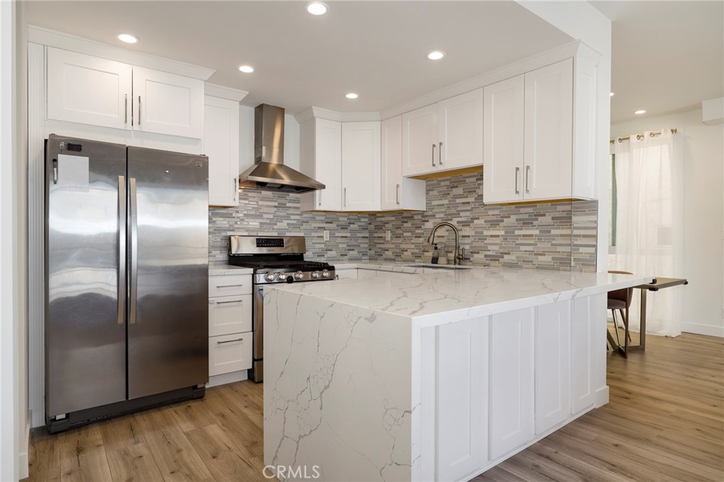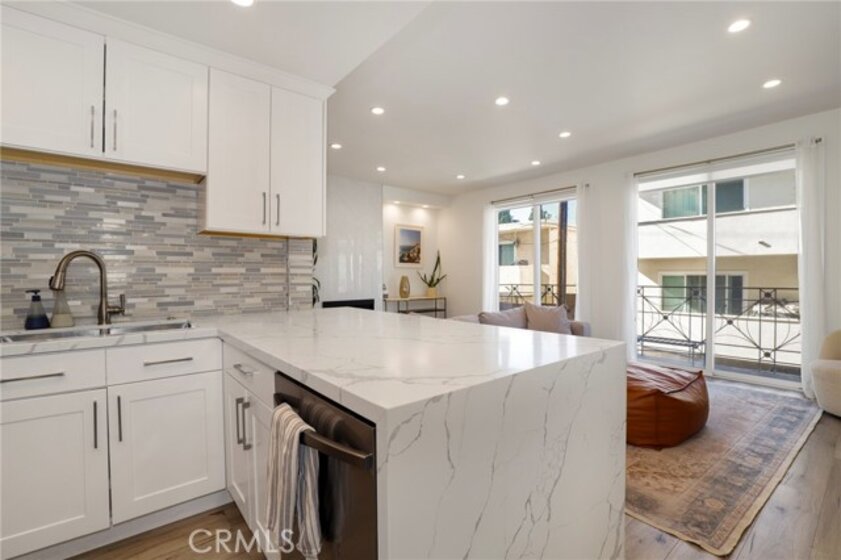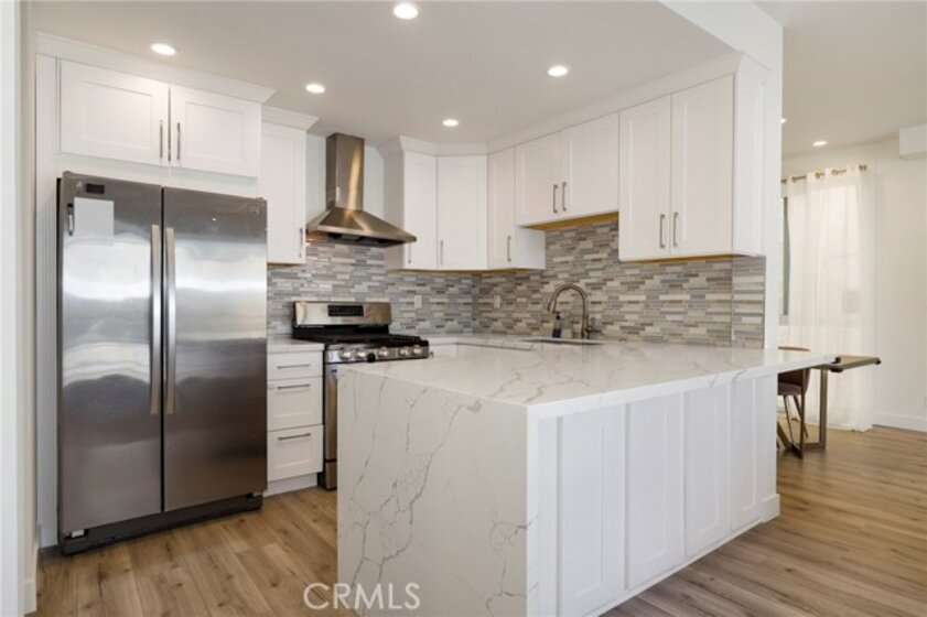 Welcome home to 11723 Goshen Ave #103!! This beautifully remodeled and freshly painted condo is a rare gem of an opportunity. Located in a prime Brentwood location, this 3-bedroom and 2-bathroom sports a fresh open concept floor plan, with newer flooring, windows, and a highly must have of an in unit laundry, all set inside an airy 1370 square feet of serene living space. Adjacent to the foyer is the spacious bathroom, fitted with dual sinks and a shower/tub combination, and two main bedrooms with recessed lighting, large windows that let you soak in natural sunlight, and built-in closet storage with mirrored sliding doors. The kitchen is a sight to behold, featuring stainless steel appliances, glossy quartz countertops, a beautiful tile backsplash, and a roomy breakfast bar that opens into an expansive living room and an intimate dining room. A cozy fireplace ties it all in, and the large private balcony off the living room creates an entertainer's dream space. Walk into your spacious primary bedroom with ensuite bathroom and enjoy your fortress of solitude and serenity. Welcome home to 11723 Goshen #103.