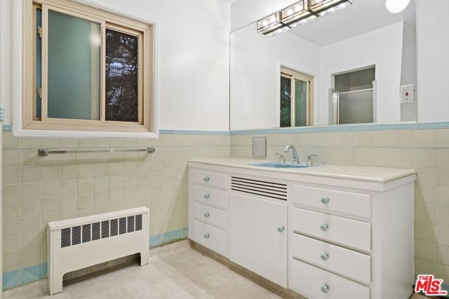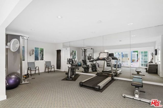 Exceptionally spacious top floor, 1 bedroom 1bathroom unit in classic mid-century California garden courtyard complex. Built in 1950 and spreads over 2.1 acres of lush landscaping, palm trees and quiet walkways with rose gardens. Unit #206 is located at the Northwest corner of this tranquil complex. A unique front entry balcony offers privacy along with a serene view of the surrounding trees and central garden. Original and newly refinished hardwood floors, and freshly painted. The bathroom has separate shower and tub. Eat in kitchen with large window and back entrance from private porch surrounded by trees. The expansive windows showcase lush landscaping, creating a peaceful treehouse-ambiance. 2-car private garage. Community Laundry, but other owners have installed washer & dryers in their unit. Close to Brentwood Village, San Vicente Shops & Restaurants, Dog park & Barrington Rec Center! HOA dues include gas, water, heating, and earthquake insurance. Complex amenities include a heated saltwater pool, whirlpool hot tub, fitness center, and guest parking.