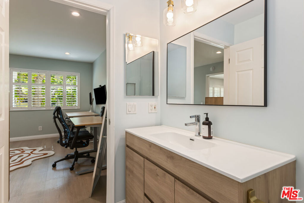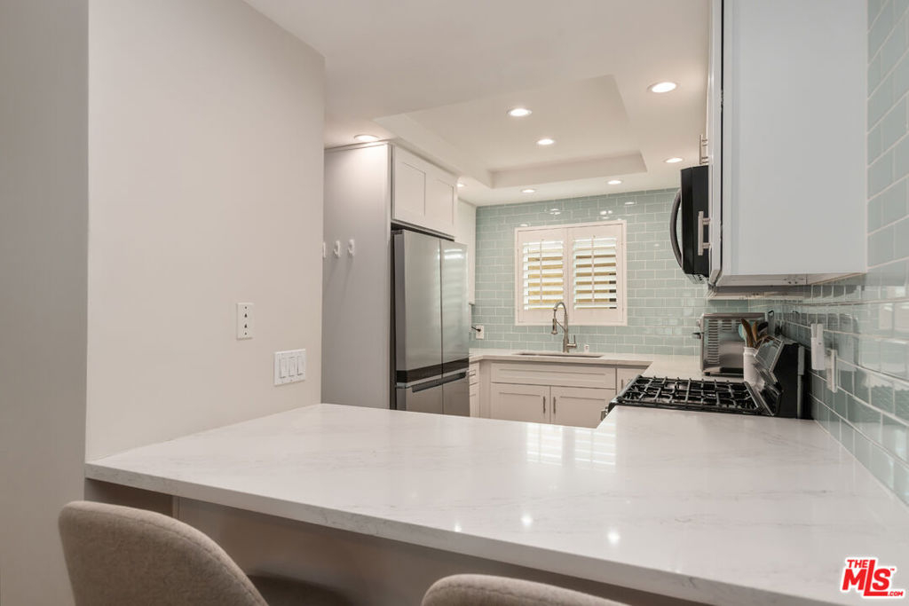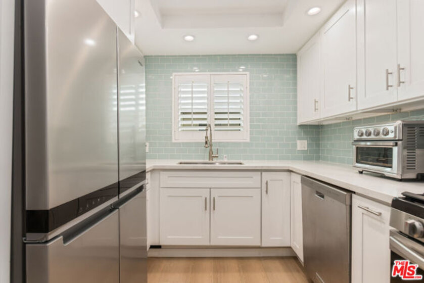 This chic, turn-key Del Rey stunner is the one you've been waiting for. Completely remodeled, this 2-bedroom, 2-bath home offers thoughtful upgrades and a calming, elevated vibe from the moment you walk in. The open-concept layout creates a seamless flow between the living, dining, and kitchen areas perfect for modern living and entertaining. The kitchen truly shines with all-new stainless steel appliances, crisp white cabinetry, pretty glass tile backsplash, quartz countertops, and a farmhouse sink with a built-in water filter. Recessed lighting throughout adds warmth, complemented by a stylish statement fixture above the dining area. The spacious primary suite, currently styled as a home office, features a beautifully designed en suite bath with herringbone tile, a light wood vanity, and a generous walk-in closet. The updated hall bathroom is perfect for guests, while the second bedroom (currently used as the primary) offers flexibility to suit your needs. Additional highlights include wide-plank, gorgeous, luxury vinyl flooring, all-new dual-pane windows and doors with a lifetime warranty (passable to the buyer), custom shutters, a new HVAC system with a Nest thermostat, new eufy smart doorbell, in-unit washer and dryer, and a private balcony accessible from both the living room and primary suite. The gated, secured building offers tandem parking, and the HOA covers earthquake insurance, water, trash, and grounds maintenance. Ideally located on the border of Mar Vista, Culver City, and Marina del Rey, you're just minutes from the Beach, Beverly Hills, and LAX. Enjoy strong walkability to local favorites like Lodge Bread, Mad Lab Coffee, Orangetheory Fitness, and Red Diamond Yoga. And a fun twist, each of the past three owners found true love while living here. Could you be next?