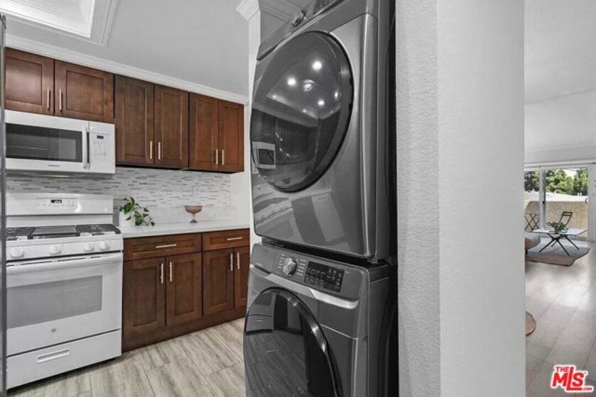 Come see this beautifully updated penthouse unit in Del Rey! This unit features two bedrooms and two bathrooms, an open floor plan, vaulted ceilings, crown molding, updated flooring, and in-unit laundry. The large primary bedroom includes a walk-in closet, ensuite bathroom, vaulted ceiling, and balcony access. The kitchen has modern stainless steel appliances, quartz countertops, and lots of cabinets. This stunning property offers peace of mind with a fully installed SimpliSafe security system, ensuring top-notch protection and convenience. Additional storage is secured and lofted in the unit, and storage closets are in the secured parking area. This unit features gated parking with the added convenience of two reserved tandem spaces, ensuring ample parking for residents. The HOA includes water, trash, building maintenance, and earthquake insurance. This location is unbeatable with easy access to the 405 and 10 freeways, public transportation, LAX, DTLA, and UCLA. Only minutes away from entertaining hot spots in Marina Del Rey, Culver City, and Venice Beach, don't miss your chance to see this beautiful home!