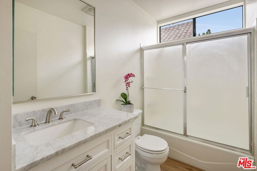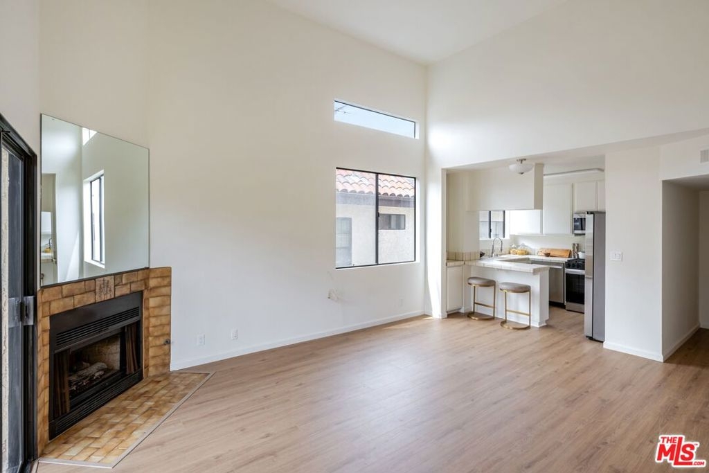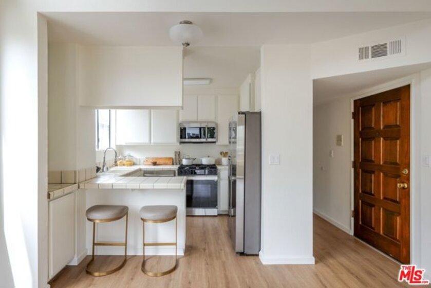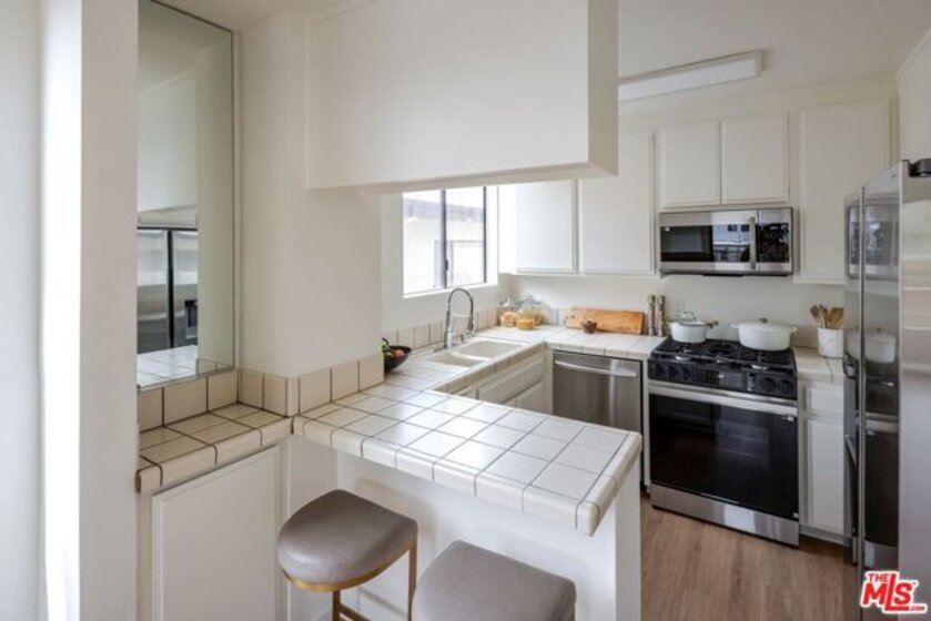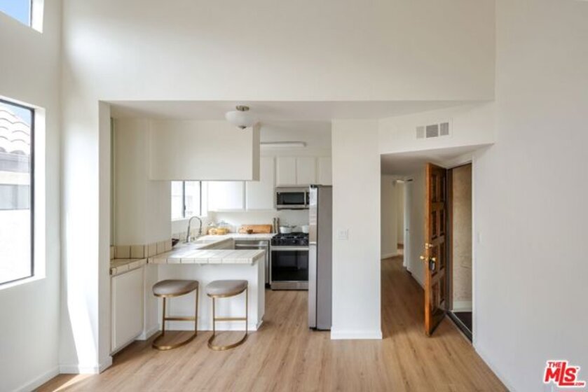 This gorgeously refreshed top-floor 2+2 condo is perched in a quiet, intimate building in the heart of West LA and offers the perfect blend of comfort, style, value and location! With no one above you and dramatic vaulted ceilings in the living room, the home feels bright, open, and filled with natural South-Western light throughout. The spacious living room is anchored by a charming fireplace and opens seamlessly to a sunny south-facing balcony ideal for morning coffee or unwinding at the end of the day in the afternoon sun. All freshly painted with brand-new laminate flooring throughout, the interiors feel crisp, modern, and move-in ready. The open kitchen features all brand-new stainless steel appliances, clean lines, ample cabinetry, and a welcoming breakfast bar for 2 that flows effortlessly into your main living space perfect for both everyday living and private entertaining. Both bedrooms are generously sized, with great light and storage, while the traditional layout offers ideal separation and privacy too. Set in an 8-unit complex, this quiet home delivers a sense of calm and respite, just moments from everything bustling. In-unit laundry & 2 side by side gated parking spaces. Enjoy unbeatable proximity to all the shops, retail and dining along the Bundy Wilshire corridor, with easy access to UCLA, Westwood, Santa Monica, Brentwood Village plus close access to both the 405 and 10 freeways. A rare opportunity to own a light-filled, top-floor retreat in one of West LA's most convenient pockets that is offered at an exceptional value and is sure to move quickly!