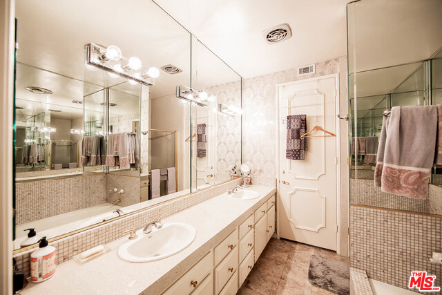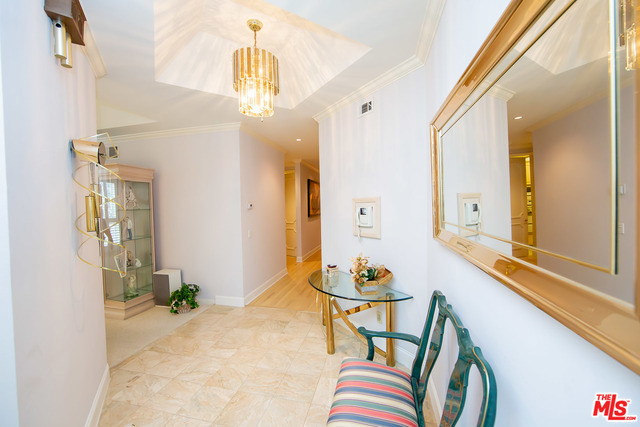 Le Chateau At Westwood is a impressive immaculate building. This spacious unit is the corner unit facing the front of the complex. The unit has 10 foot high architecturally designed ceilings with plantation shutters throughout and double pane windows. Large living room with a fireplace and a bar. Spacious dining room with a balcony which connects with a large kitchen with granite counter tops and breakfast area. Behind double doors off the hallway is a large master suite with a fireplace and across the hallway is the guest room with a private bath and balcony. Loads of closet space, cabinets throughout with a laundry area. Central air conditioning and heating included.