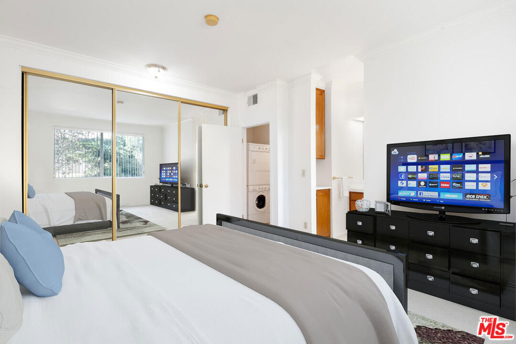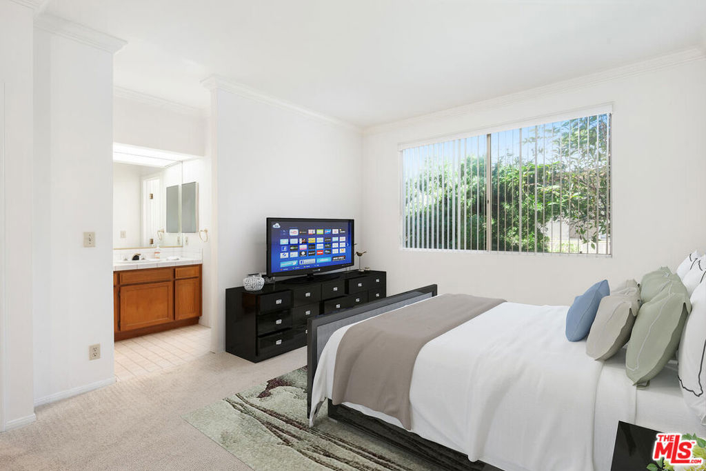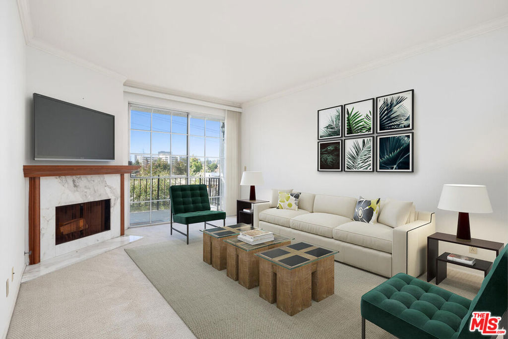 Spacious light-filled top floor condo in charming courtyard building with lush foliage and running stream. Open floorplan with formal entry, high ceilings, crown moldings, large living room with fireplace, wet bar, dining room and balcony with west facing views. Kitchen with breakfast area, spacious primary bedroom with generous built-in closet and full bath with combination shower/tub, window and skylight. Additional features include: In-Unit Washer & Dryer, Central A/C & Heat, Extra Storage & 2 Car Side x Side Parking in gated security garage with guest parking. Pool, Spa, Fitness Center, Recreation Room and new roof. *HOA dues includes Earthquake Insurance. Prime Westwood location with close proximity to Westwood Village, U.C.L.A., Bristol Farms, parks, shops and restaurants.