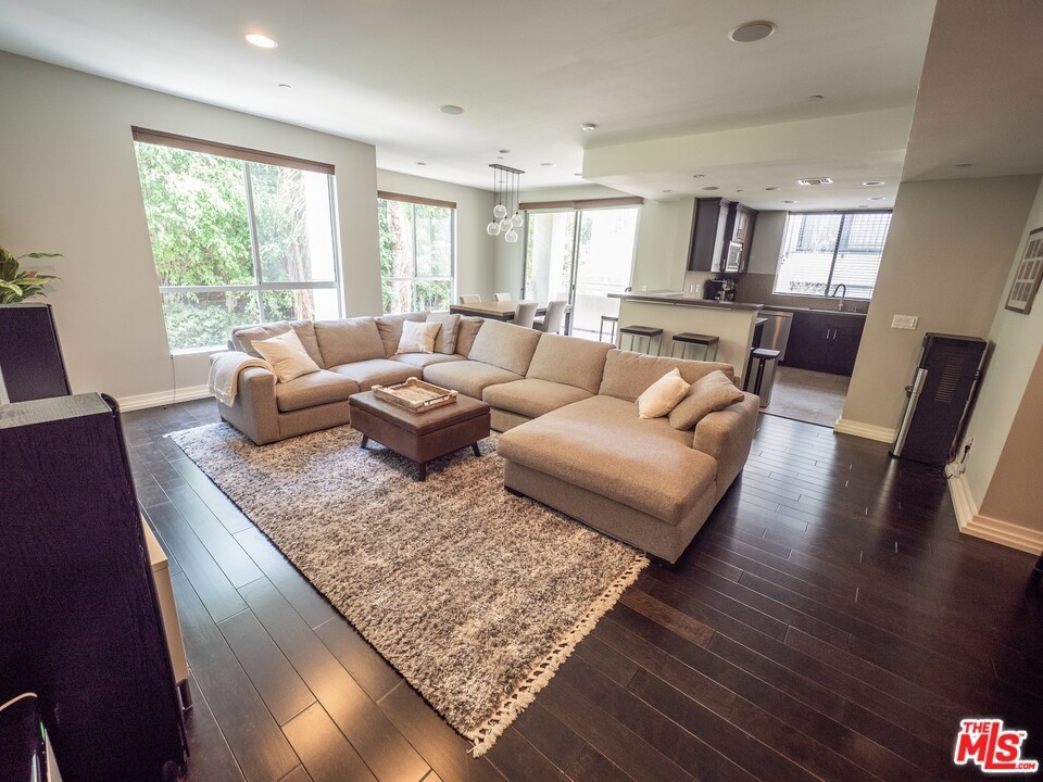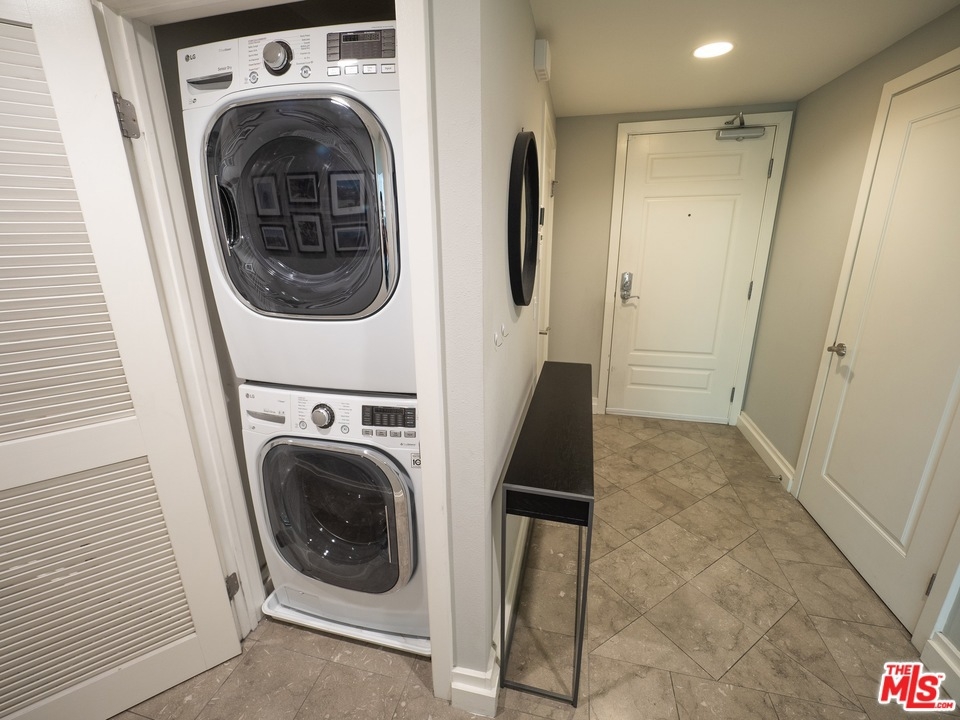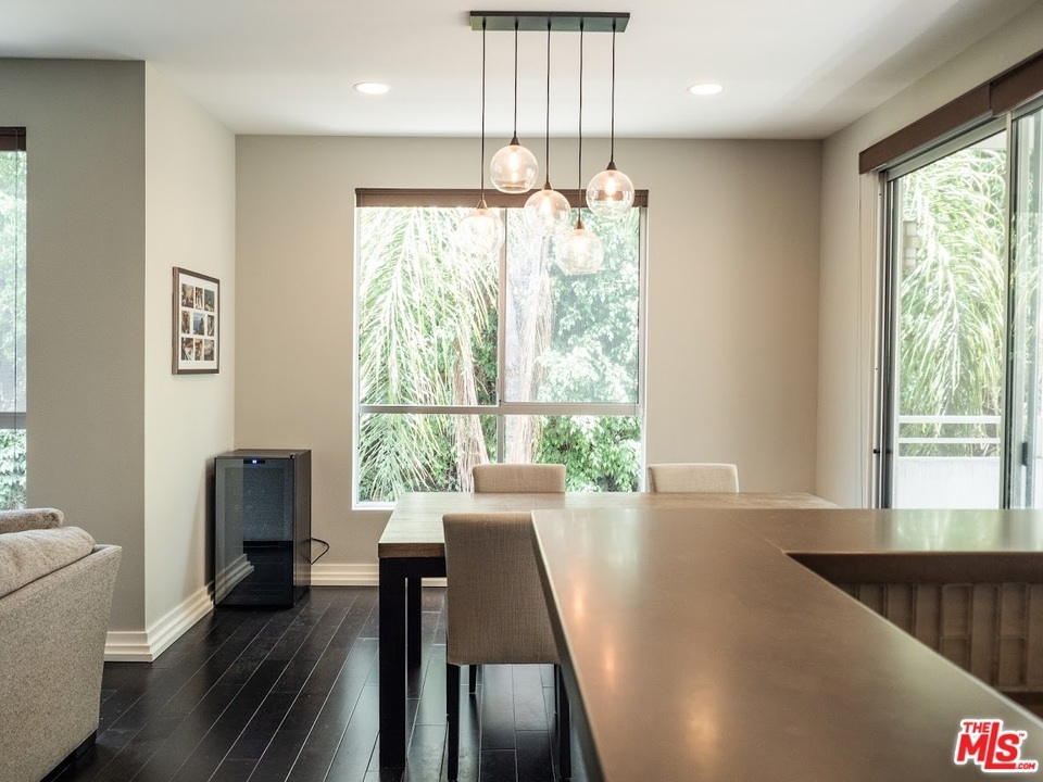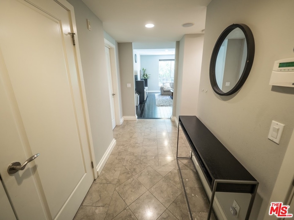 Serene 2 bed/2.5 bath single story condo in prime Westwood/Century City area, a ten minute walk to the Century City Mall. Rear facing corner unit w/only one common wall, this unit is bright and quiet surrounded by lush greenery and tree views. Spacious open floor plan w/high, nine feet ceilings is great for entertaining w/large living and dining areas. Luxurious finishes throughout including high-end engineered wood floors and wool carpets in bedrooms, Caesarstone countertops, soft-close custom cabinets, top of the line stainless steel appliances, custom blinds, built in speakers throughout, double-paned windows, keyless entry, Nest smart home system thermostat. Large master suite w/private juliet balcony, walk-in closet and separate shoe closet. Large second bedroom w/ attached full bath. Ample storage in unit w/linen and coat closets in hallway. Two parking spots in gated garage with guest parking and additional private storage unit. Video surveillance throughout the building.