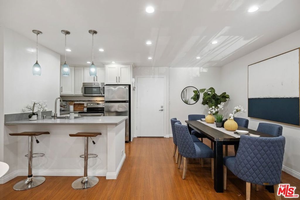 Buyers- Special note- FHA spot approval loans are possible here! Discover the epitome of luxury living in the heart of Westwood at this exquisite resort-style complex. Enjoy a wide range of amenities, including a 24/7 onsite security guard, boutique hotel-style lobby, digital package check-in, an on-site manager, a fully-equipped fitness center with a gym, a rejuvenating steam room and sauna, a stylish party room with a catering kitchen, a separate tv lounge area, and convenient bike storage rooms to suit your active lifestyle. Step into a serene outdoor oasis with beautiful landscaping, water features, a heated pool, a spa, charming koi ponds, and even friendly turtles. This fully renovated 1-bedroom, 1-bathroom condo is move-in ready. Entertain your guests in the open-concept kitchen featuring modern cabinetry, elegant quartz countertops with bar seating, and stainless steel appliances. The primary bathroom boasts a contemporary vanity, tile floors, and a tiled bath/shower enclosure. Sip your morning coffee and experience city vibes and park views on your west facing balcony. The condo also offers laminate flooring throughout, smooth ceilings with new dimmable recessed lighting, and exposed brick accent walls. The condo was just freshly painted to provide a clean template. Just across the street, a spacious park offers tennis and basketball courts, soccer fields, and a dog park. This sought-after location places UCLA, Westwood Village, and the future purple line subway station within easy reach. The property provides on-site EV car charging and includes one deeded parking spot in the gated and secure garage. The HOA dues covers electricity, water, trash, and earthquake insurance. Elevate your lifestyle with this exceptional opportunity!