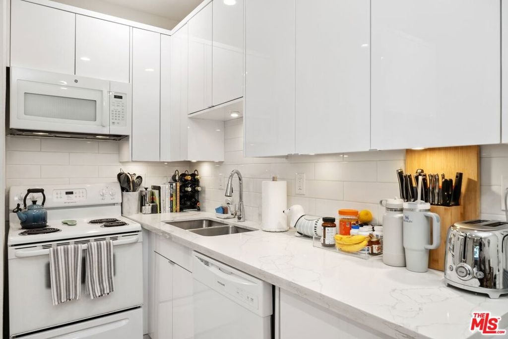 Experience elevated living in this exclusive boutique residence nestled in the vibrant heart of Westwood. This exceptional resort-style complex offers an array of amenities to enrich your daily life. This condo is not just a living space, but a premium experience inclusive of vigilant 24-hour security, digital package check-in, and on-site management support. Embrace wellness with a fully-equipped fitness center, featuring a gym, steam room, and sauna. For the social host, a chic party room with a catering kitchen, separate TV lounge, and dedicated bike storage awaits. Step outside to a serene outdoor oasis boasting lush landscaping, tranquil waterfalls, a heated pool, spa, captivating koi ponds, and friendly turtles for your enjoyment. This move-in-ready 1 bedroom, 1 bath unit on the preferred quiet side of the building features an open-style kitchen with quartz stone countertops and sleek white modern glossy acrylic cabinets. The living room flows seamlessly to an outdoor patio, perfect for leisurely mornings. The en-suite bedroom offers privacy with no shared walls with another condo, plus two slider closets, luxury vinyl plank floors and an updated bathroom. Additional features include 9-foot ceilings and tile flooring in the living area. Adjacent to the property lies a sprawling park with tennis and basketball courts, soccer fields, and a dog park, catering to outdoor enthusiasts. Enjoy easy access to UCLA, Westwood Village, and the future purple line subway station from this coveted location. Benefit from on-site EV car charging and an assigned parking spot. HOA dues cover; electricity, water, trash, earthquake insurance and one parking space, enhancing the convenience and value of this extraordinary opportunity. Rare for Westwood, FHA spot approval loans are possible at this building, inquire for more information. Seize the chance to relish upscale living in the heart of Westwood at this remarkable residence.