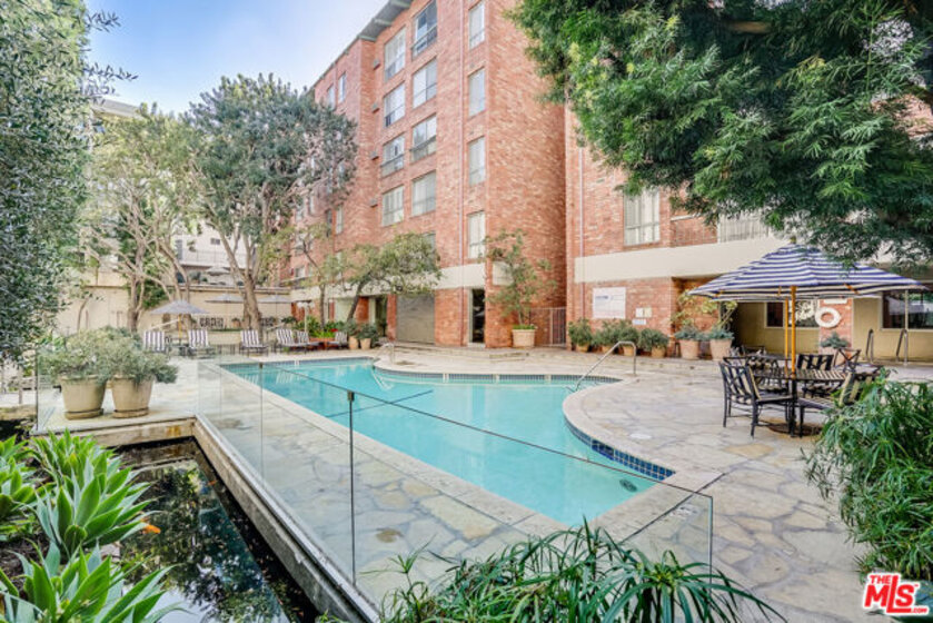 This oversized spacious one BR unit in the prestigious Colony at Westwood has it all. The light-filled open floor plan provides abundant living space with room for home office, and offers beautiful views of the peaceful courtyard and pool. The remodeled kitchen featuring quartz countertops and subway tiled backsplash, opens to living and dining areas. A private and spacious bedroom with brick accent wall features ample closets & storage, and connects to a tastefully done ensuite bath that includes a newer vanity & floor, and new shower door. The building is a dream come true with 24-hr security, onsite manager, courtyard with large pool, spa, waterfalls, and multiple outdoor seating areas. Topping things off are the updated and fully equipped fitness room, steam-room, and sauna, as well as entertainment/conference room off the lobby. All utilities included in the monthly HOA (electric, water, trash). If you're seeking a home near UCLA and Westwood Village at a fantastic price-point, look no further. Westside living at its best! *OFFER DEADLINE: Friday, Feb 3, at 12:00 pm.