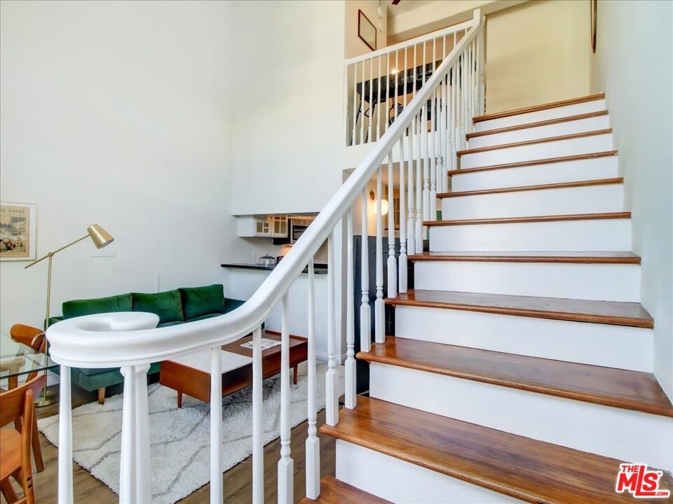 Fantastic Westwood condo! This light filled loft style 2 story condo features soaring ceilings in the living room, large & dramatic windows, views of trees as well as 2 tandem parking spots. The bedroom is the open loft overlooking the living room and features a double closet. This beautiful resort style building is centrally located in the heart of Westwood. The complex features a 24 hour security guard, on-site manager, large gym with steam room & sauna, conference room and much more. The HOA fee includes all utilities as well as earthquake insurance. Close to UCLA and all the best Westwood has to offer!!
