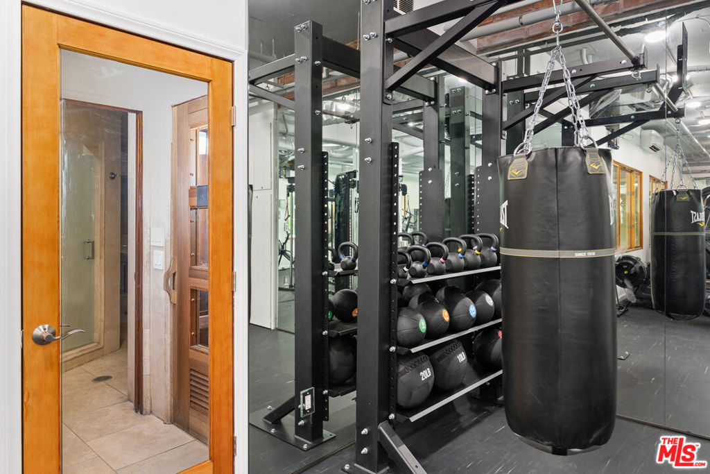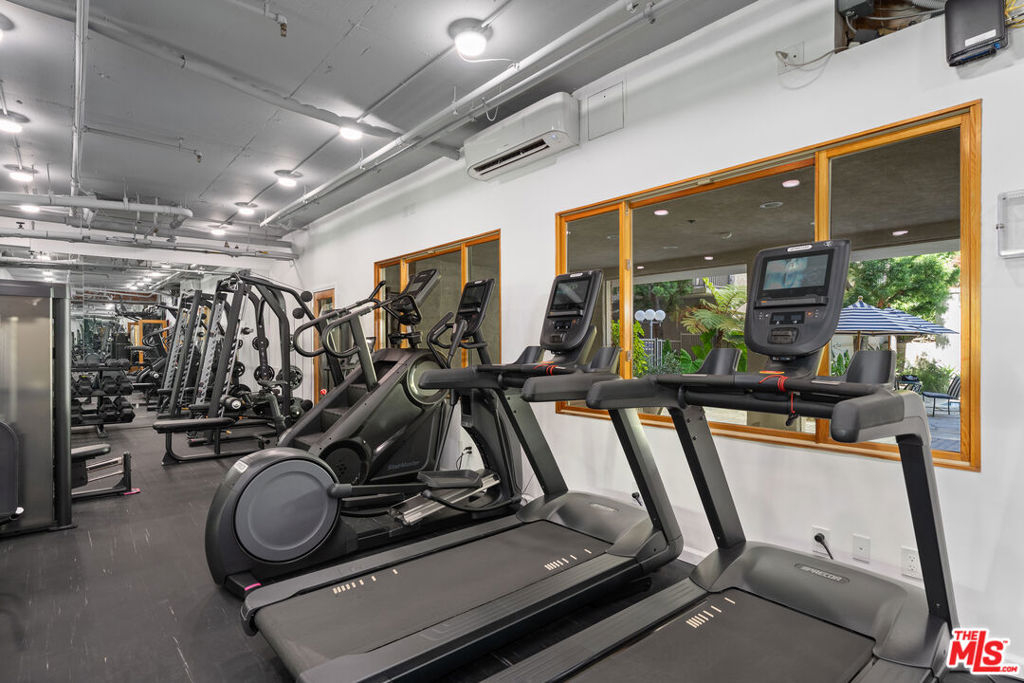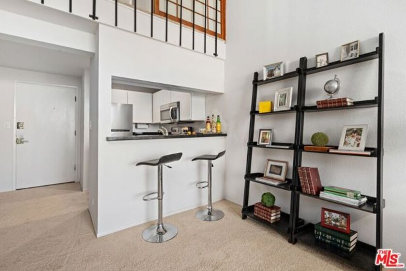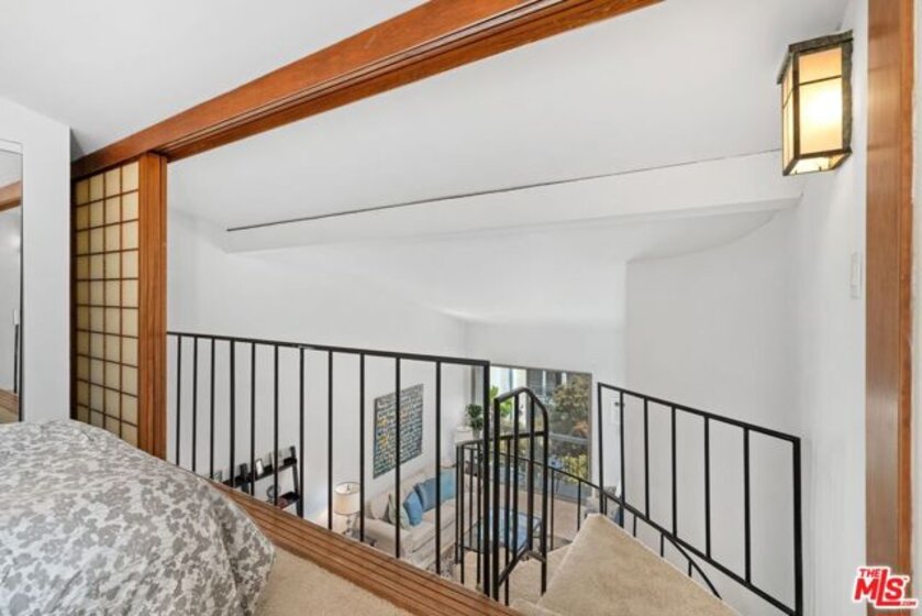 Step into refined Westwood living with this captivating two-bedroom, two-level penthouse loft condo, where sophisticated design and resort-caliber amenities create an exceptional lifestyle opportunity in one of the most desirable locations on the Westside. Perched in an exclusive, resort-style building, this end-unit residence offers the perfect blend of style, comfort, and convenience, with only one shared wall, soaring vaulted ceilings, and expansive windows that flood the home with natural light. An east-facing balcony off the main living area provides skyline views of Wilshire Corridor's high-rises, lush treetops, and golden morning sun, making it the ideal spot to enjoy your first coffee of the day or unwind with a glass of wine in the evening. The newly updated kitchen features striking black granite countertops, brand-new stainless steel appliances, an upgraded sink and faucet, freshly painted cabinetry, and modern luxury vinyl plank flooring that brings warmth and texture to the space. The downstairs en-suite bedroom is a quiet sanctuary with high vaulted ceilings, peaceful green views, and enough space to accommodate a king or California king bed. The adjoining bathroom features rich travertine tile floors and countertops, with a shower over tub for both functionality and relaxation. A spiral staircase leads to an airy and flexible loft space, ideal for a home office, guest bedroom, or creative studio, complete with custom wood Shoji screen sliders that allow for full privacy or open connection to the space below, offering versatility to match your lifestyle. Throughout the unit, you'll find thoughtful upgrades including Restoration Hardware lighting fixtures, brand-new carpeting, fresh interior paint, all new electrical outlets and light switches, a new wall-mounted air conditioning and heating unit in the living room, and a new electric wall heater in the primary bedroom. The unit also comes with what is widely considered the most valuable parking space in the building, a massive end-unit tandem space that easily accommodates two oversized vehicles, making it a rare find for car enthusiasts or anyone seeking convenient, stress-free parking. Beyond the home itself, residents of this community enjoy an unparalleled amenity package, including a newly renovated fitness center equipped with Peloton and Precor machines, a relaxing steam room and sauna, a heated pool and spa surrounded by tranquil landscaping, koi ponds, waterfalls, and multiple outdoor seating areas for lounging or socializing. Indoors, a beautifully appointed clubhouse with a catering kitchen, plus a separate media lounge with TV, provide inviting spaces to entertain or unwind. Added security and ease of access come with recently upgraded fob-controlled entry to all common areas, while on-site EV charging stations, bike storage, and convenient laundry facilities support a modern, connected lifestyle. Located directly across the street from a sprawling park with tennis courts, basketball courts, soccer fields, and a dog park, this location offers active outdoor living just steps away, and provides effortless access to UCLA, Westwood Village, Century City, Beverly Hills, and the upcoming Purple Line subway station, making this both a prime investment and a peaceful retreat. The HOA dues include electricity, water, trash, and earthquake insurance, offering both value and peace of mind. Whether you are searching for a luxurious primary residence, a stylish pied--terre, or a smart investment property in one of LA's most dynamic neighborhoods, this loft is truly one-of-a-kind, blending comfort, character, and convenience in a setting that feels like an urban sanctuary. Don't miss your chance to own this rare gem in the heart of Westwood's most exclusive condo community.