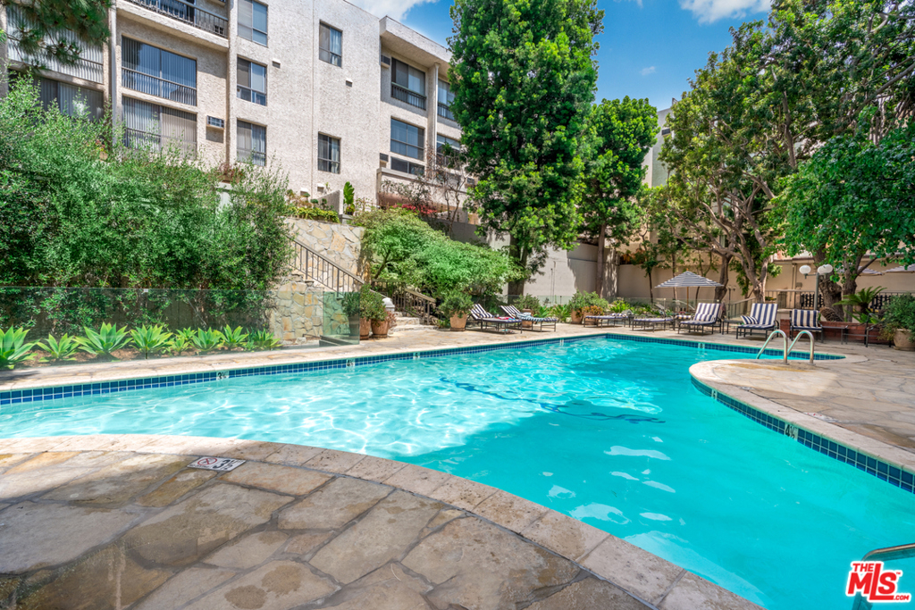 Don't miss your chance to own the top floor specious unit in a five star resort like community in highly sought after Westwood area. Soaring ceiling in the living room makes the place bright and warm. Sliding door exits to the balcony viewing the city through the gigantic trees and at the same time gives you privacy and comfort. Bedroom is specious enough for the king size bed, it features dual wall and walk-in closets. Generous size bathroom has inside stackable washer and dryer for your convenience. Staircase off of the living room leads to the loft and big walk in closet and can be used as a second bedroom, guestroom or an office. Kitchen has updated cabinets, stainless steel appliances and granite counter tops as well as a bar stand opening through the living space. HOA fees include: Building and grounds maintenance, electricity, hot and cold water, trash, sewer and an earthquake insurance. This complex features: gated parking, 24/7 security guard, on-site manager, well equipped gym, steam room, Jacuzzi, a pool, renovated pond, outdoor lounge areas, etc. There is a large park conveniently located just across the street; it is close to UCLA and Westwood Village. Unit has one assigned parking space in the community garage on Lobby level.