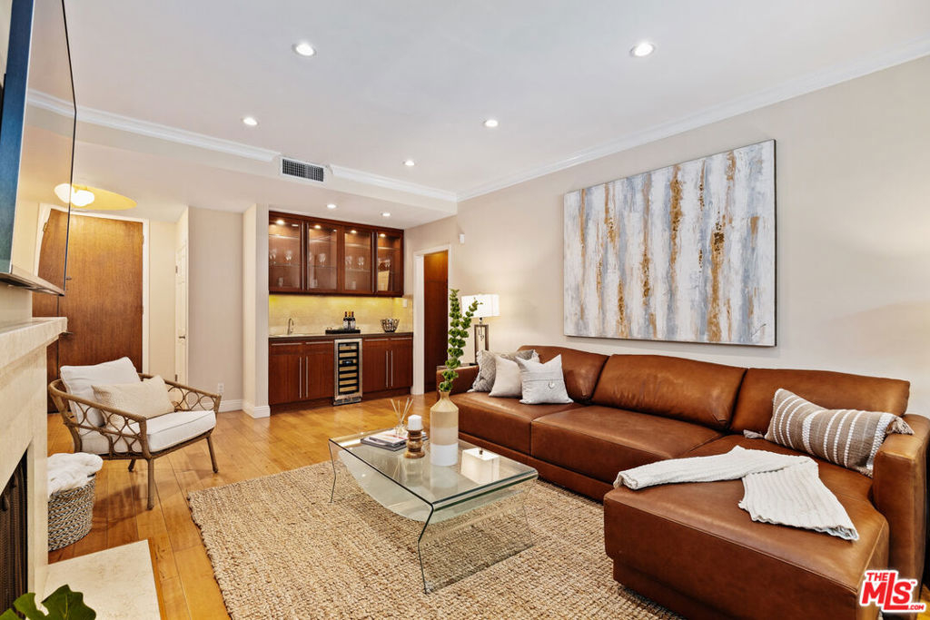 This listing will be active on 2/10/2022. This stunning, move-in ready, single-story corner unit is a bright and fully renovated gem in the heart of Westwood! Custom built chef's kitchen features Caesarstone countertop, ample cabinet space, double oven, built-in microwave and stainless steel appliances. Bright breakfast nock, formal dinning room, large living space with sliding glass door leading to the balcony with tree-top view! Luxurious designer touches include recessed lighting, travertine stone, gorgeous distressed hardwood floors throughout and spa-grade master bathroom. Double sinks en-suite master bathroom with rainfall shower head. Gas fireplace, wet bar with built-in wine cooler and endless storage space! Gated side-by-side 2 parking space. Fairburn Elementary School. Conveniently located to trendy shops and restaurants, UCLA, Century City Westfield Mall, New Google Office, Beverly Hills and Santa Monica! Quick and easy access to freeways! HOA dues include cable, internet, EQ insurance and water! Extra storage in the building.