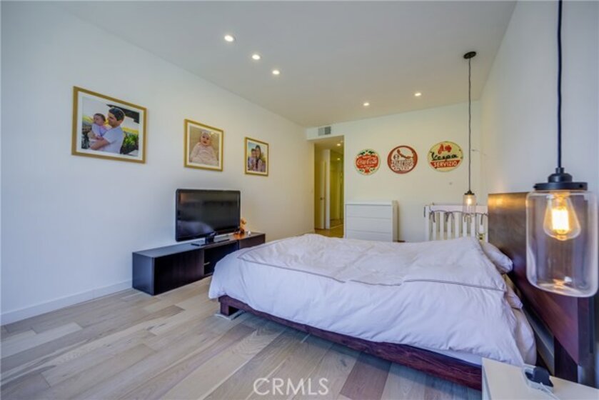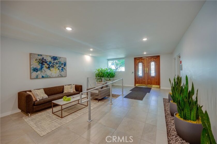 Enter through double doors into the foyer to this beautiful, fully renovated home that is filled with natural light. The living room with it's high ceilings, features a gas fireplace ready with cable and electrical hookups and opens onto both the patio and formal dining area/den. The entertainer's kitchen with brand new stainless steel appliances, leads to both a generously sized eating area along with a laundry room and pantry. The spacious master suite has a large walk-in closet and hall closet which leads to the bathroom with brand new double sinks and vanity, separate tub and shower featuring designer fixtures and European porcelain tile. New Oak hardwood floors, new recessed LED lights, new electrical outlets and switches, and freshly painted walls. This home is centrally located near UCLA , Century City, Brentwood and several parks. Side by side parking with storage.