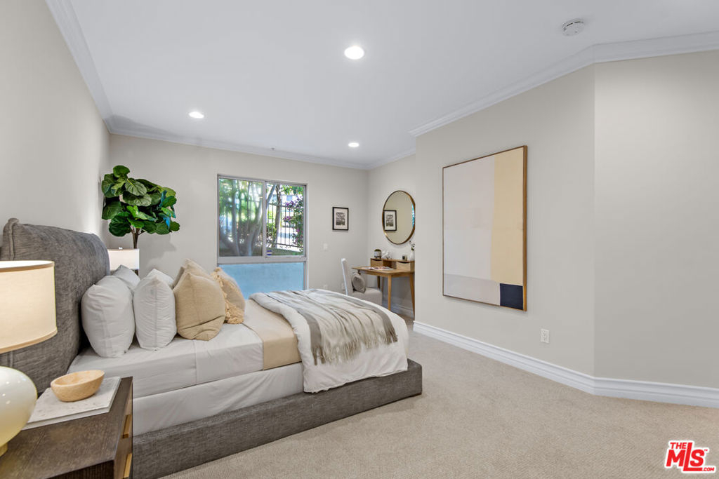 Welcome home to Unit 101, a rare corner residence in one of Westwood's most coveted boutique buildings. This spacious 3 bedroom, 3.5 bath condo offers a perfect blend of sophistication, comfort and privacy. Step inside to soaring ceilings, hardwood floors and an open layout perfect for entertaining. The expansive living room is anchored by a beautiful fireplace and flows seamlessly into the dining area and gourmet kitchen- complete with stainless steel appliances, custom cabinetry and stone countertops. Retreat to your generous primary suite featuring a large walk-in closet, a spa-like bath with double vanities, soaking tub and separate shower. Two additional bedrooms offer flexible space for guests, a home office or a gym. In-unit laundry, central HVAC, recessed lighting and two secure parking spaces with additional storage. Controlled access and conveniently located to Century City, UCLA and Beverly Hills. With only a handful of units in this building, don't miss this unique opportunity.
