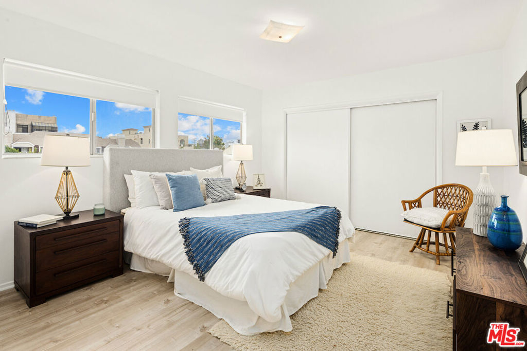 Light and bright top-floor condominium, located on the backside of the building with only one shared wall; an ideal location! The open living room, dining room, kitchen, extra large bedrooms, infused light, and cross breezes from the windows and glass sliding doors, give this property a Zen feeling. The balcony, located off the dining area, brings outdoor greenery inside. Inside laundry, generous closets, and storage add to the value of this home. Small courtyard building situated on a tree-lined street, near UCLA, Westwood, shopping, restaurants, and the 405. Please come and check this property out!