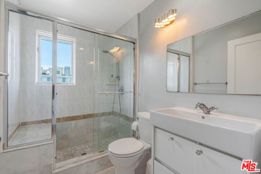Incredibly Rare Opportunity for a 4 bed/4.5 bath Corner Unit 2-story Penthouse unit in prime North of Santa Monica Blvd. mid-block location in desired smaller 8-unit building. Stunning 2,800+sf unit that feels like a home and filled with incredible natural light with desired indoor-outdoor flow from each room to large balconies on each level. Double doors into formal entry with powder room opens to stunning open floor plan with high ceilings and wall of windows overlooking balcony. Spacious formal dining room with soffit ceiling opens to family room and living room, and double French doors to large front facing balcony, ideal for entertaining. Chef's kitchen with island, breakfast bar, gas range and double ovens and side door to Barbecue and outdoor seating area. All bedrooms with ensuite bathrooms, including 1 bedroom downstairs with built-in desk and 3 bedrooms upstairs, each with access to large balcony. Primary suite with fireplace and French door to front balcony, oversized walk-in closet and primary bathroom with 2 skylights, dual sinks, separate bath and shower. Additional features include upstairs open loft bonus space, hardwood flooring downstairs, 4-secured parking spaces, in-unit laundry room with storage, 3 fireplaces (living, family and primary suite). Common area includes sparkling pool/spa, sundeck, rec room and gym with sauna. Close proximity to UCLA, Westwood Village and Westwood Blvd. retail and restaurants, Bristol Farm, Century City Shopping Center and Beverly Hills. Fairburn Elementary. Move-in ready!