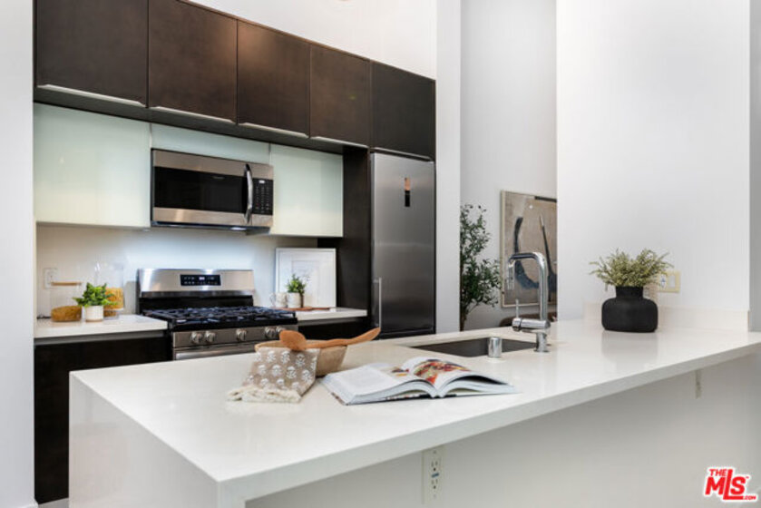 Experience the height of coastal urban living in this striking architectural loft-style townhome, perfectly situated in a prime West LA location just west of the 405. This sophisticated 2-bedroom, 2-bathroom unit offers an airy, open layout defined by soaring ceilings, recessed lighting, and a seamless flow to a large, charming private patio ideal for al fresco dining and entertaining. The gourmet kitchen is a chef's dream, featuring Caesarstone countertops and high-end stainless steel Energy Star appliances, while the convenience of an in-unit washer and dryer completes the interior. Residents enjoy luxury building amenities including a resort-style furnished courtyard with a fireplace and two dedicated, non-tandem parking spaces in a secure subterranean garage equipped with a storage room and bike racks. Offering incredible value, the HOA fee covers internet, water, gas, and earthquake insurance, making this a rare, turn-key opportunity to own in one of LA's most desirable neighborhoods just steps from the vibrant shops and restaurants.