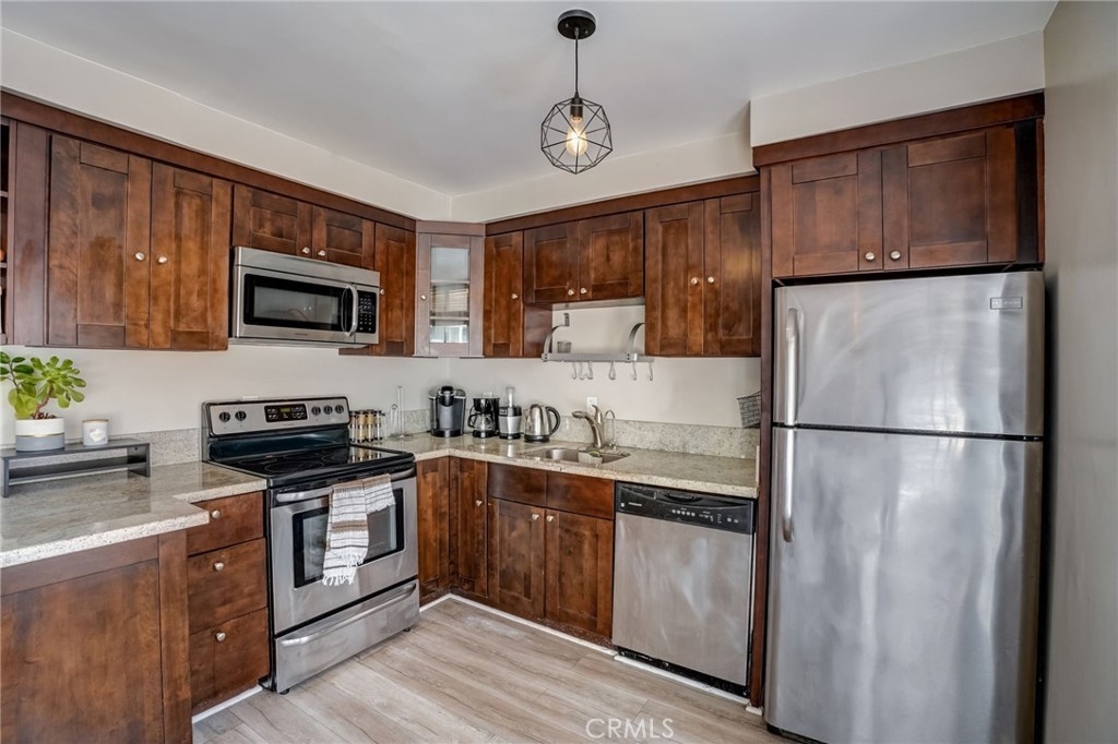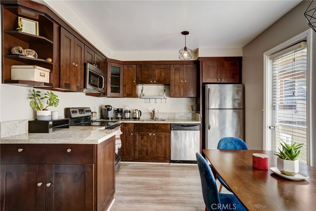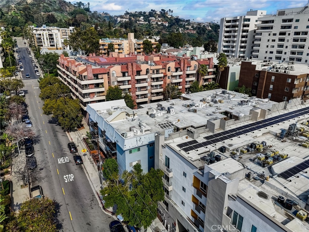Perched in the Hollywood foothills, this chic remodeled top-floor studio offers a prime location just moments from Runyon Canyon, Hollywood attractions, clubs, Ralphs, shops, and restaurants. With a high walkable score and a nearby Metro bike share station, convenience is at your fingertips. Inside, the studio boasts an open floor plan flooded with natural light, leading to a cozy balcony. Meticulously maintained and fully renovated, every detail has been attended to, from the bathroom with an in-unit washer to the studs, walls, flooring, pipes, and electric. Upgrades include flooring, a smart key entrance door, smart lighting, smart AC control, fresh paint, all-new lighting and fixtures, and a spacious storage unit at the parking spot. Outside, the complex features amenities such as a pool, sauna, spa with an open patio space, intercom entrance, and a security camera system, ensuring both comfort and security for residents.