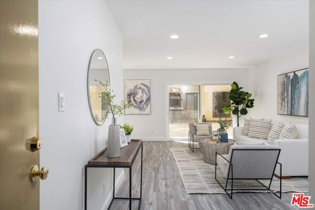 Opportunities like this don't come around often - a newly renovated condo in a prime location, offering both luxury and convenience. Welcome to Casa Palmero, where this stunning one-bedroom, one-bathroom unit spans 784 square feet of beautifully designed living space. Every detail has been thoughtfully updated with high-end finishes and modern touches. Recessed lighting and waterproof vinyl wood flooring create a sleek, contemporary ambiance, while new dual-paned windows fill the space with natural light. Complemented by LED lighting throughout the home to set the perfect mood, the open-concept design seamlessly connects the living and dining areas, making it perfect for entertaining or simply unwinding in style. A standout feature of the living room is the built-in bar, complete with a dual-sided beverage cooler - wine storage on the left and food or drinks on the right. The kitchen is a chef's dream, boasting quartz countertops, stainless steel appliances, and soft-close cabinetry for both elegance and functionality. In the spa-like bathroom, nickel-finished waterfall fixtures and an anti-fog illuminated mirror bring a refined touch. Step outside to a spacious patio that extends six feet into the courtyard, running the full length of the unit offering significantly more outdoor space than upper-floor balconies. The generously sized bedroom provides a peaceful retreat, while the secure building includes two tandem parking spaces for added convenience. Residents enjoy access to top-tier amenities, including two gyms, a sauna, and a swimming pool and spa, currently undergoing renovations for future enjoyment. Nestled at the base of Runyon Canyon, this home offers a rare blend of tranquility and city vibrancy. Don't miss your chance to own a sophisticated retreat in one of LA's most sought-after neighborhoods!