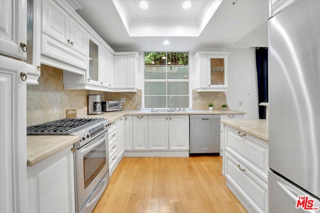 Sophisticated Westwood Condo with Townhouse Appeal. Discover the perfect fusion of privacy, space, and convenience in this stunning corner-unit, townhouse-style condo in prime Westwood. Boasting 1,669 sq. ft., this 2-bedroom, 2.5-bathroom residence offers a thoughtfully designed layout with multiple outdoor areas, ideal for both relaxation and entertaining. Downstairs, you'll find two generously sized en-suite bedrooms, each providing a serene retreat. Upstairs, the open-concept living and dining areas flow seamlessly, enhanced by hardwood floors, central AC/heat, and abundant natural light. A well-appointed kitchen, in-unit side-by-side laundry with storage, and secured tandem parking with additional storage add to the home's effortless convenience. Situated moments from Century City, Beverly Hills, and the beach, this move-in-ready gem is also within the sought-after Westwood Charter School district. Experience the best of city living in a home that perfectly balances comfort and style!