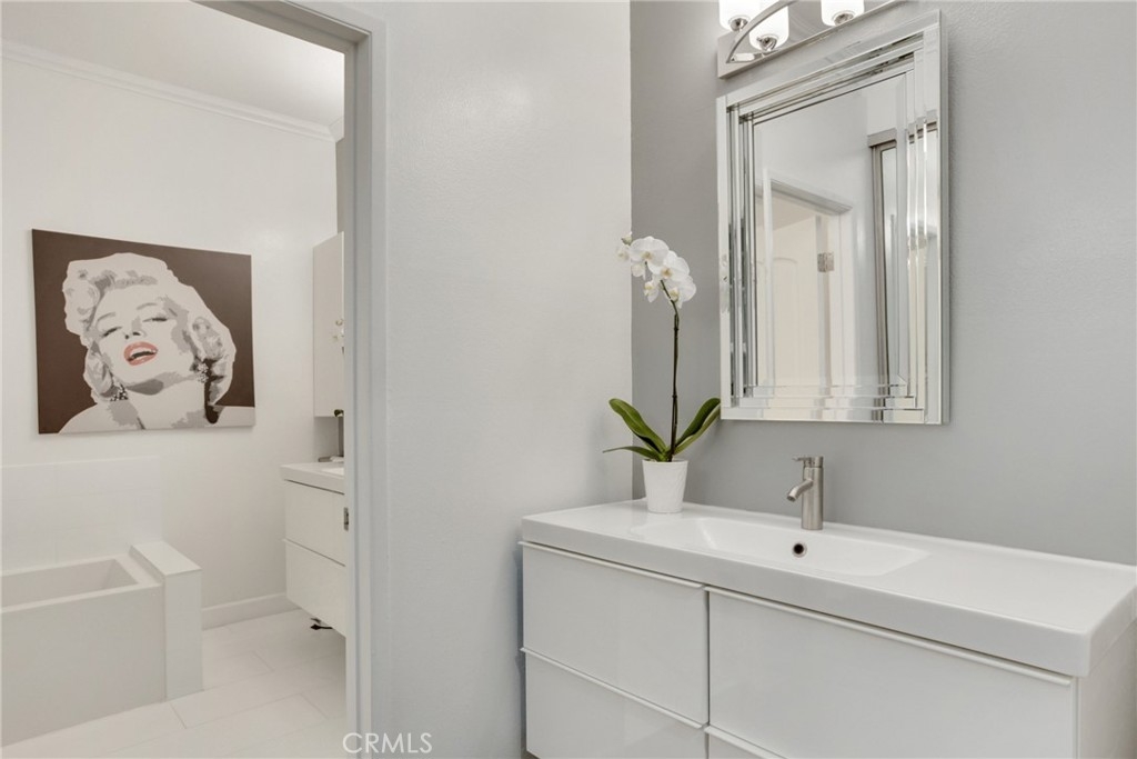 Stunningly updated two bedroom condo is in a prime Westwood location and will sell fast. This beautiful unit features pristine engineered hardwood floors, crown molding, newer double paned windows, solid wood doors and plantation shutters throughout. Bright and full of light, the kitchen was updated with new cabinets with contemporary pulls, quartz counters, a mobile center island. The kitchen space includes a small dining nook that is perfect as a work space or to eat a quick bite. The home has a lovely balcony, a dedicated dining room, living room with fireplace, laundry room with storage and two bedroom suites each with ensuite, updated bathroom, plus a separate powder room. The bathrooms have been updated with contemporary surfaces, new vanities with soft close drawers and modern economy toilets. A pony wall in the living area separates an updated bar that has plumbing and can be converted to a wet bar or also be used as a work from home space. This is a SMART home including a Google Nest Thermostat, CO1 and fire detectors and Doorbell. There are two secure parking spaces in the garage plus extra storage. The HOA provides EQ insurance, gas and water and best of all, a rooftop "resort like" area with private pool and hot tub. Close to UCLA, Westwood village, Century City and major freeways, this home is ideally located and move in ready!
